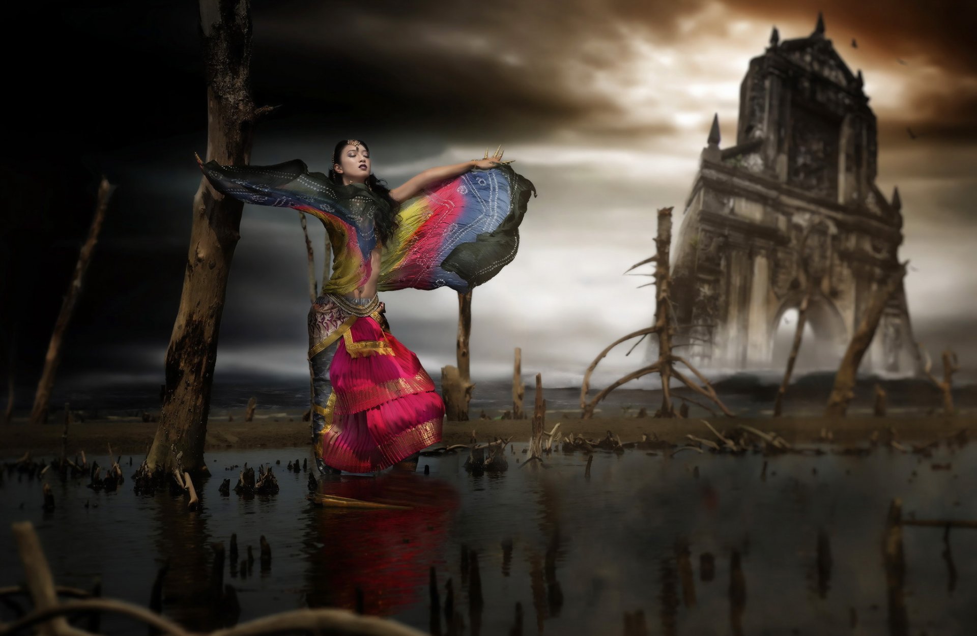 Bailarina bailando en el fondo de un lago bajo la lunaBailarina bailando en el fondo de un lago bajo la Luna