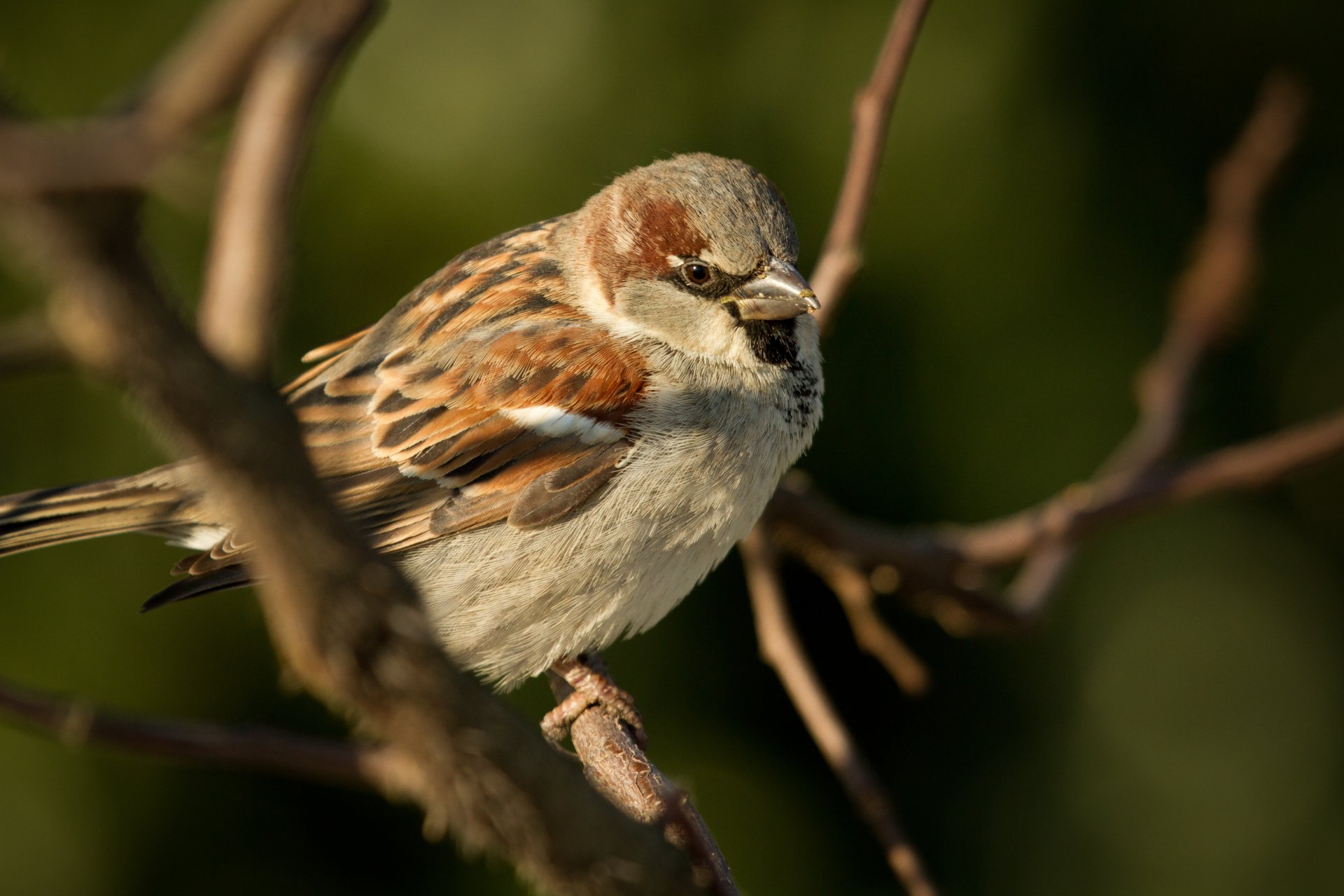 El gorrión se calienta en los rayos del sol B