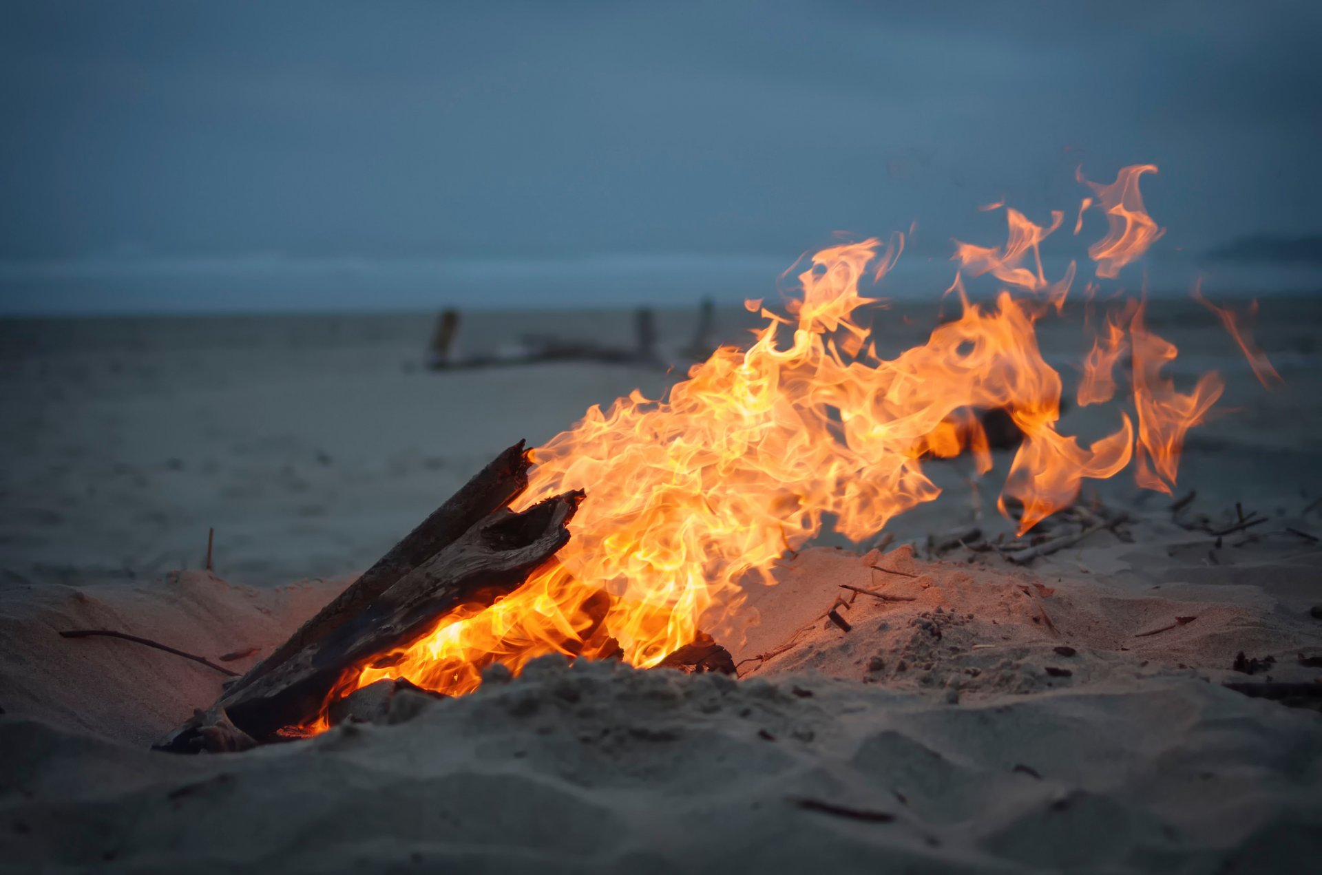 Fogata en la arena con vista al océano