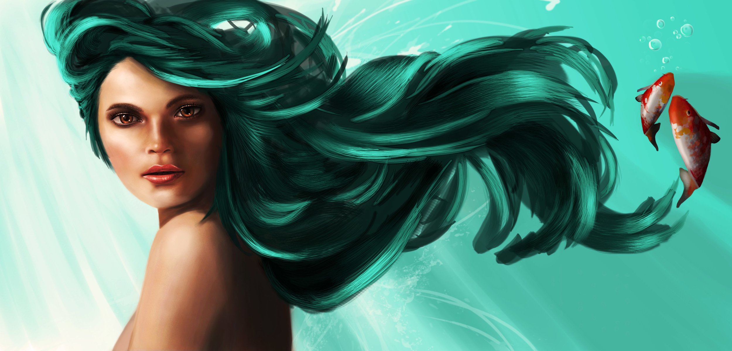 Playa, arena blanca, palmeras. bajo el paraguas hay dos tumbonasPlaya, arena blanca, palmeras. Bajo el paraguas hay dos tumbonas