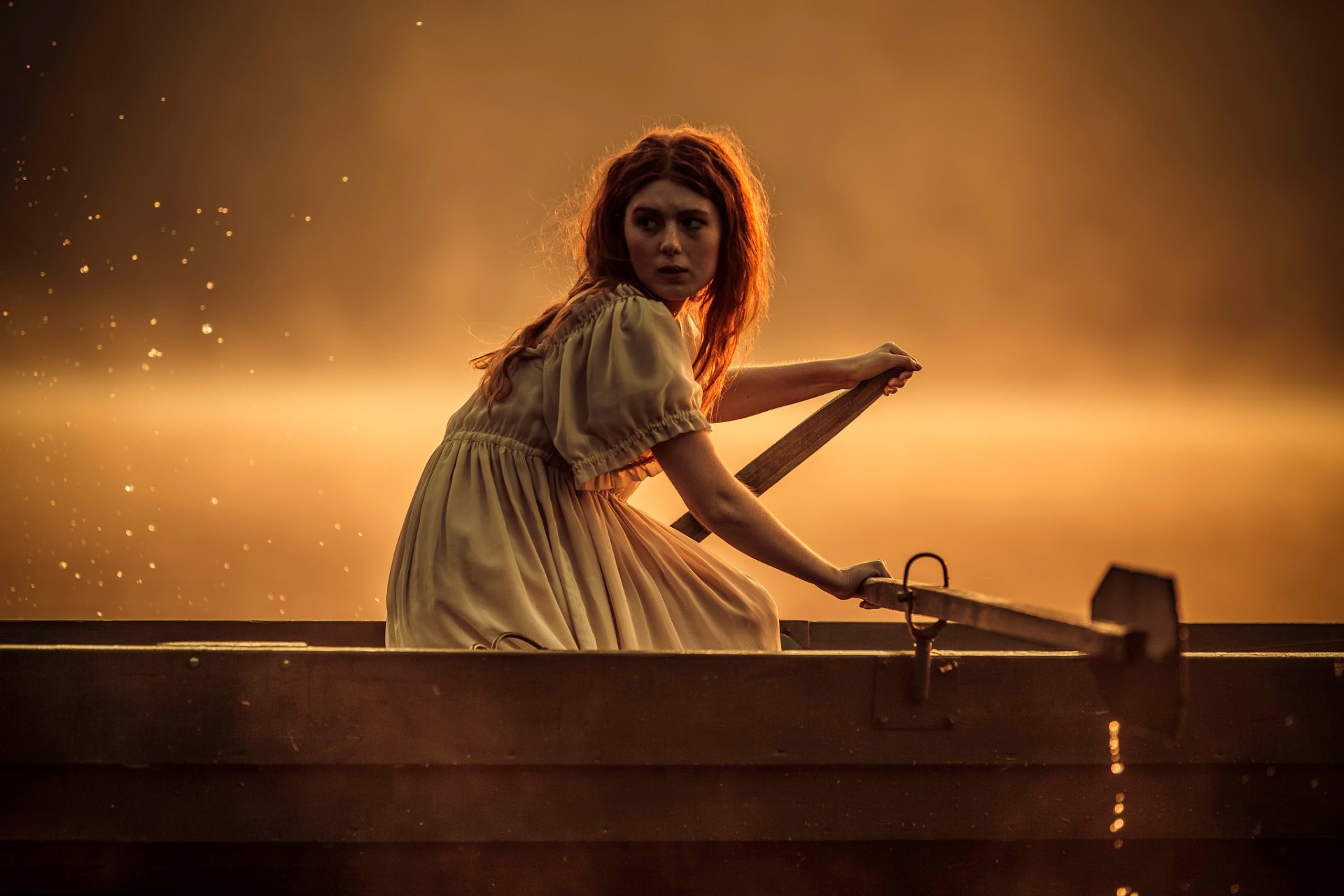 La chica en el barco Mira con ansiedad