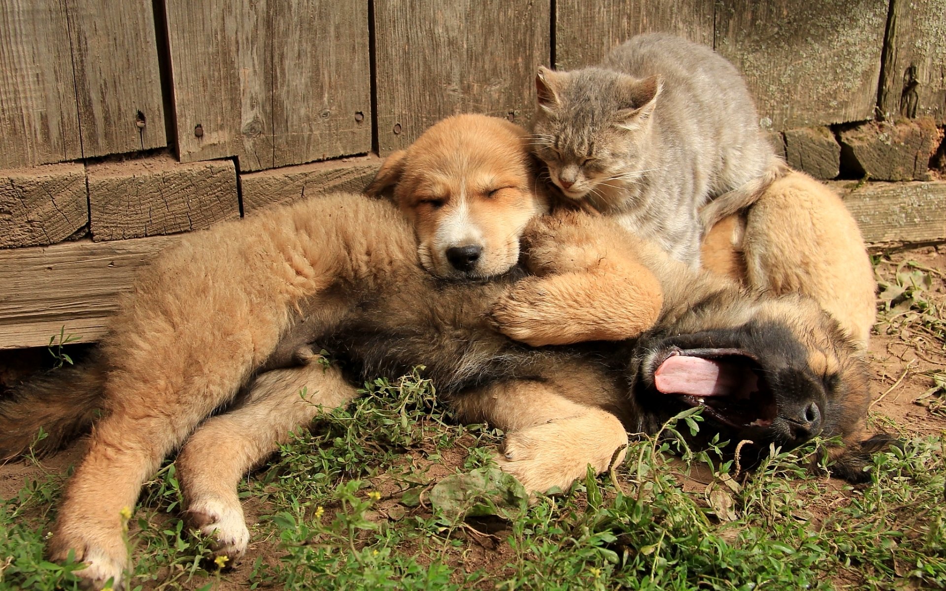 En un perro grande se encuentran un perro y un gatoEn un perro grande se encuentran un perro y un gato