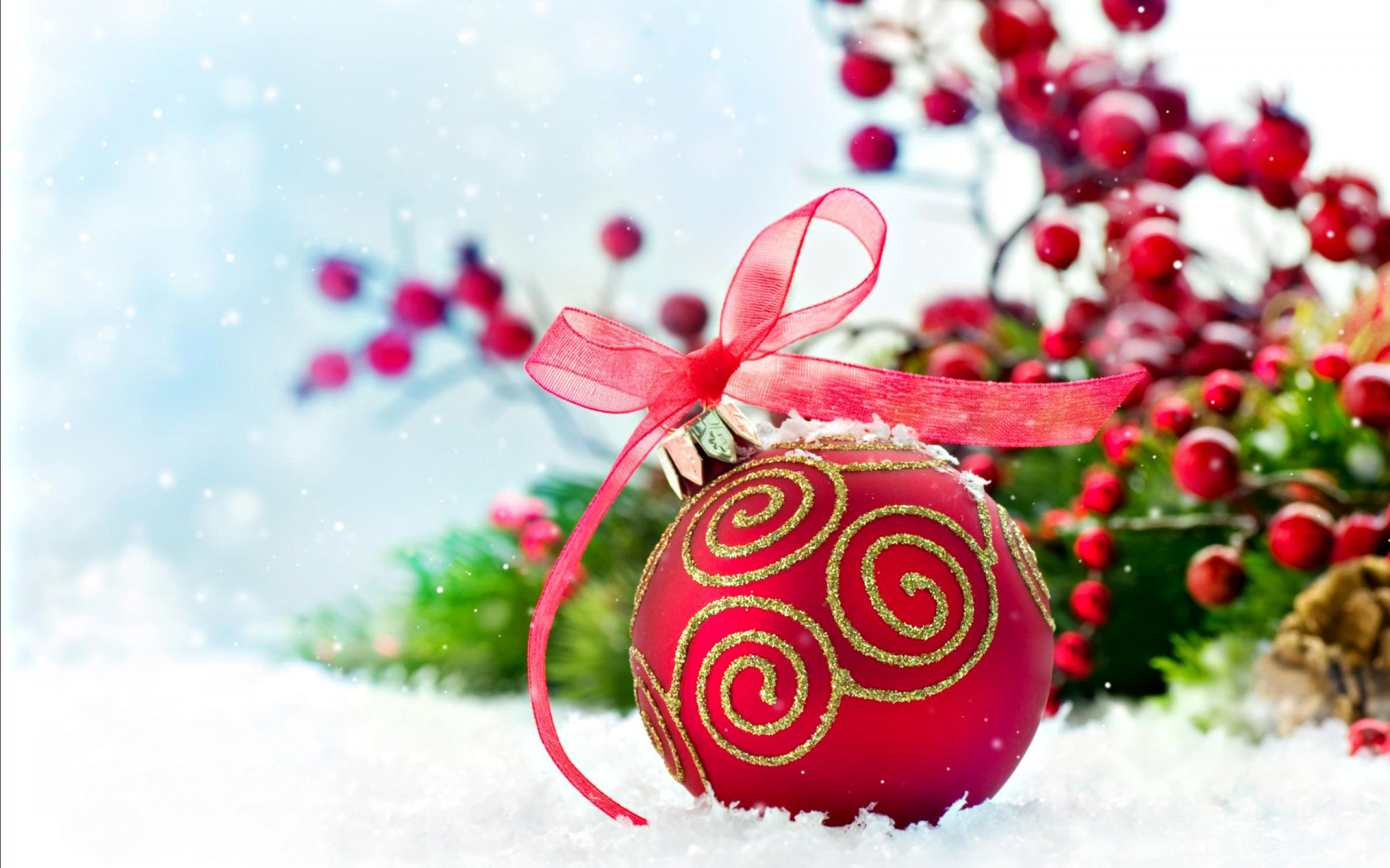 Una bola de año nuevo turquesa con patrones cuelga de hilos blancos contra ramas con pequeñas manzanas rojas en inviernoUna bola de año nuevo turquesa con patrones cuelga de hilos blancos contra ramas con pequeñas manzanas rojas en invierno