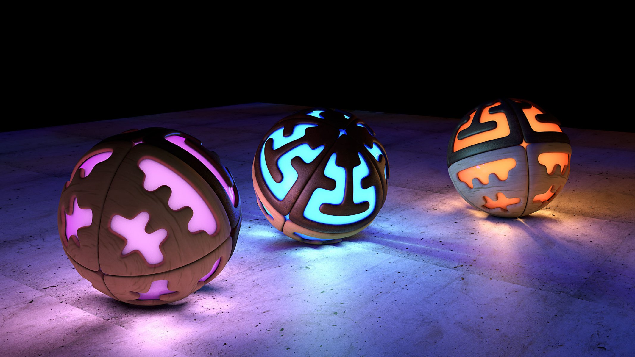 Bolas de vidrio volumétricas de diferentes colores con reflexiónBolas de vidrio volumétricas de diferentes colores con reflexión