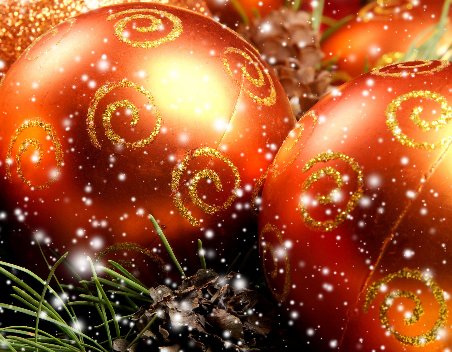 Tres grandes bolas rojas de Navidad entre pequeñas plateadas