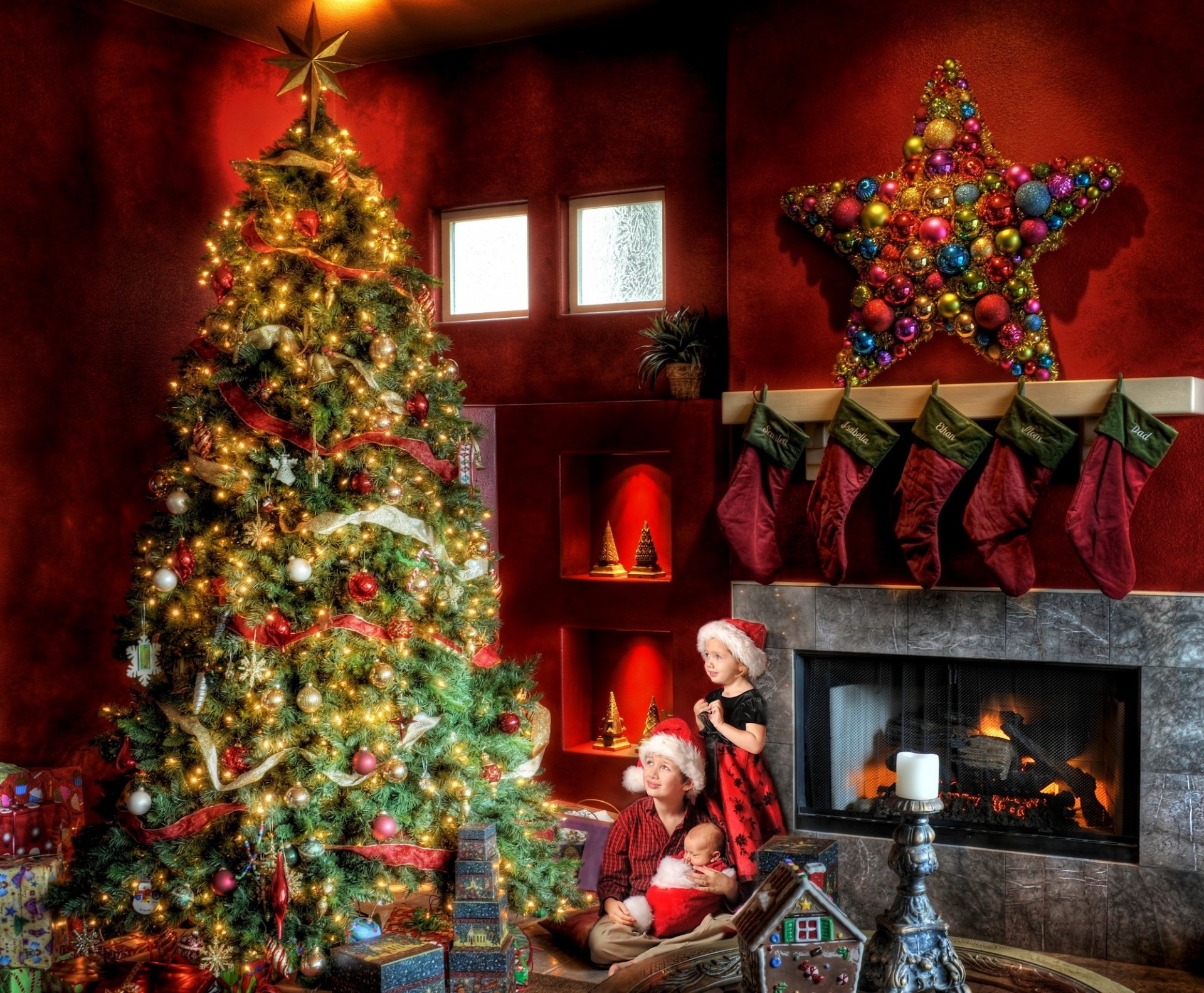 Santa claus y el árbol de navidad. saludos de vacacionesSanta Claus y el árbol de Navidad. Saludos de vacaciones