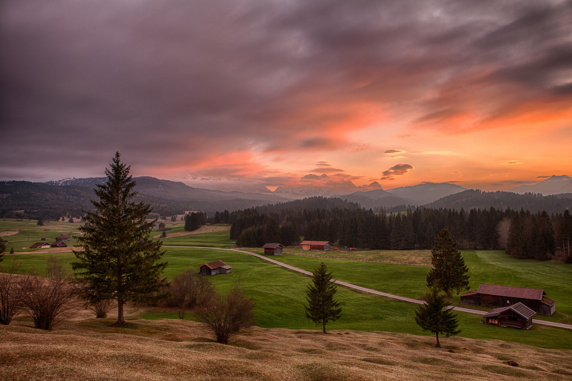 Lago a orillas del cual montañas y bosques de coníferasLago a orillas del cual montañas y bosques de coníferas