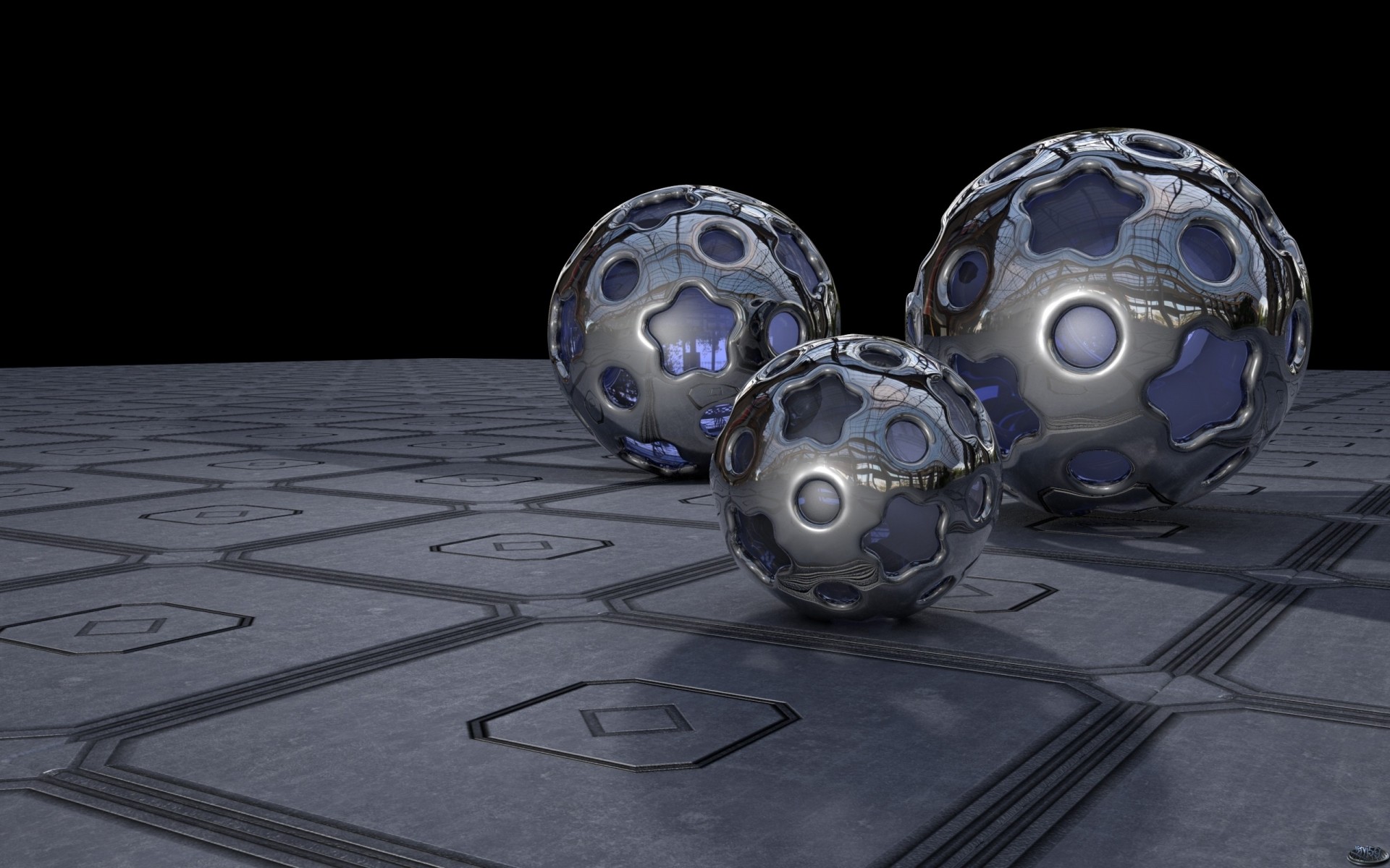 Las bolas de vidrio multicolores arrojan reflejos a la superficie