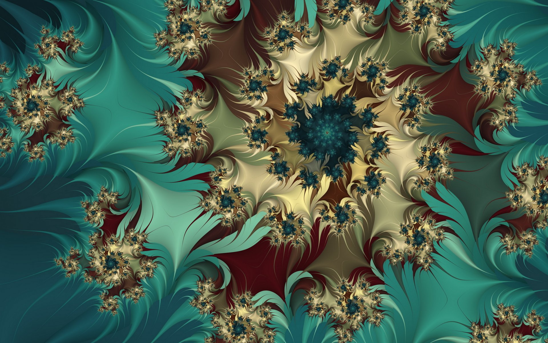 Patrón fractal en forma de brotes dorados y verdesPatrón fractal en forma de brotes dorados y verdes