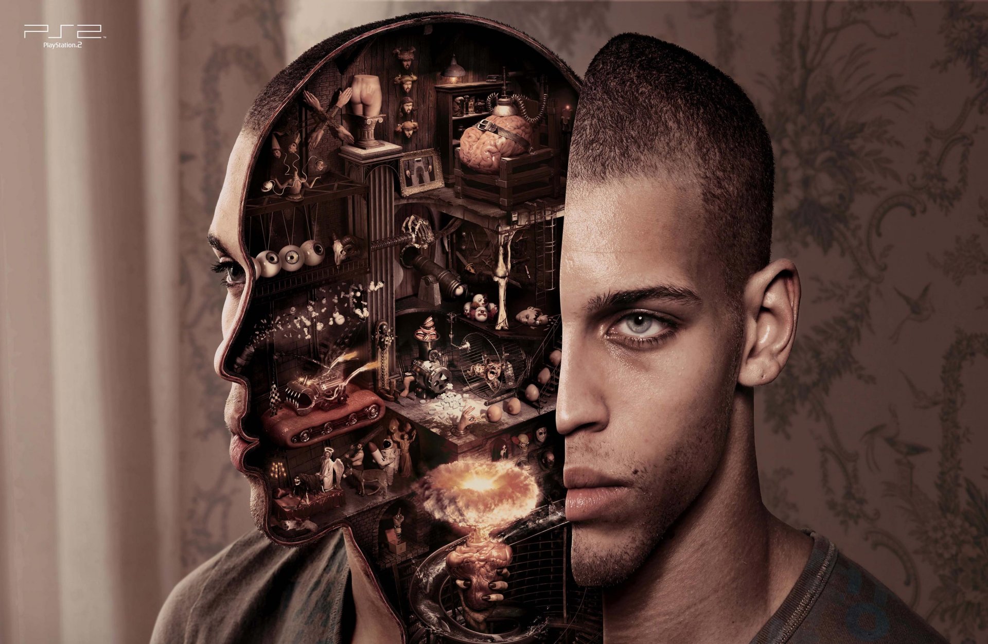 La cabeza de un androide alienígena sobre un fondo negroLa cabeza de un Androide alienígena sobre un fondo negro