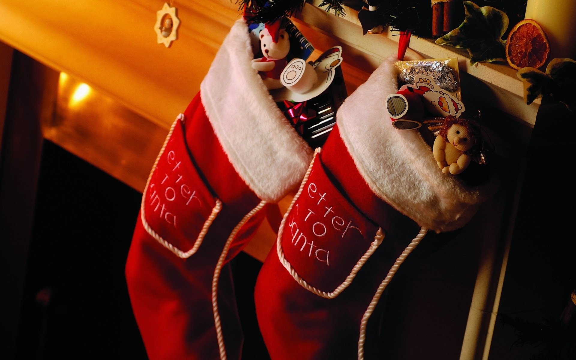 Árbol de navidad y calcetines de regalo colgando de una chimenea en llamasÁrbol de Navidad y calcetines de regalo colgando de una chimenea en llamas