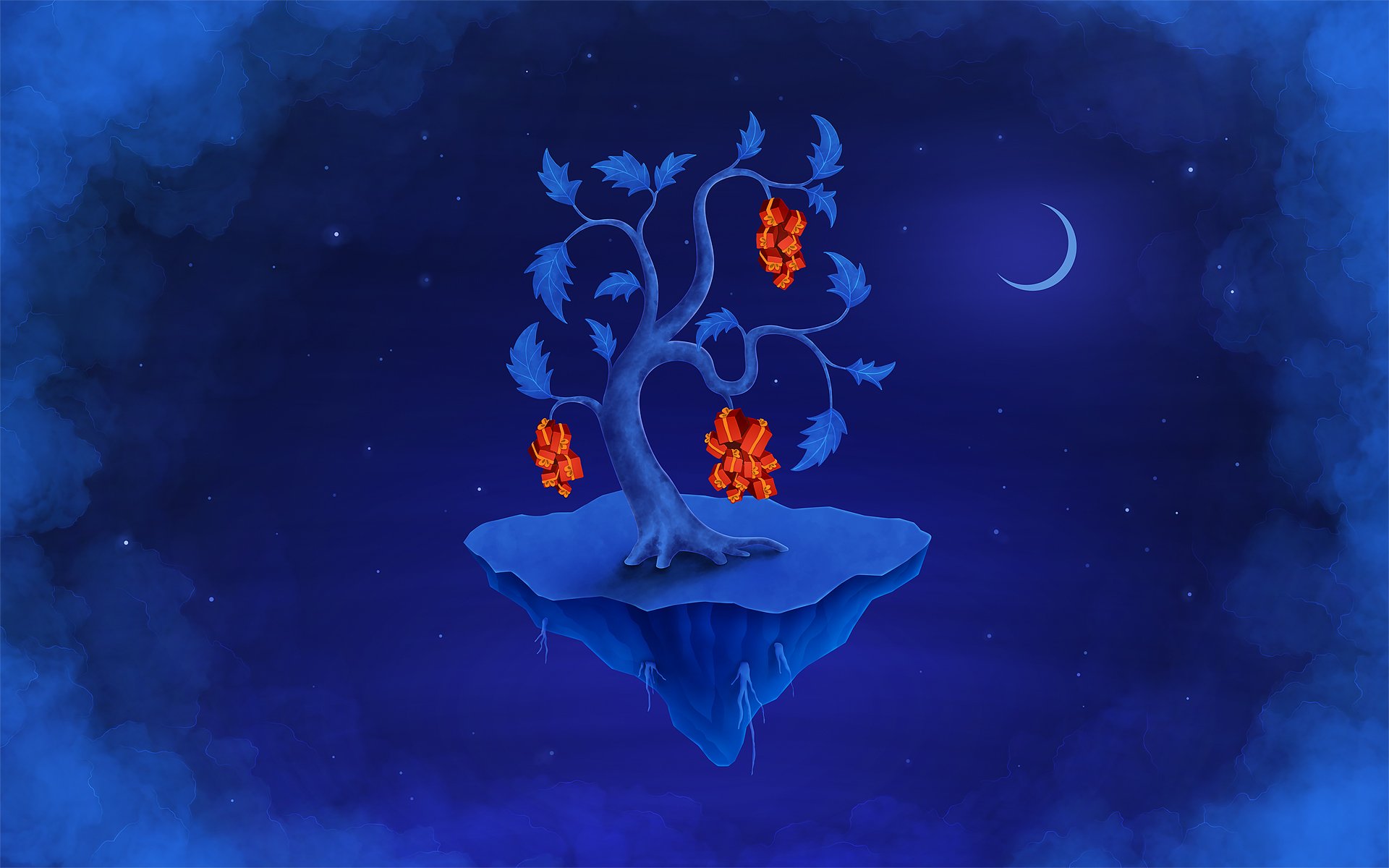 El árbol es una esmeralda azul en regalos