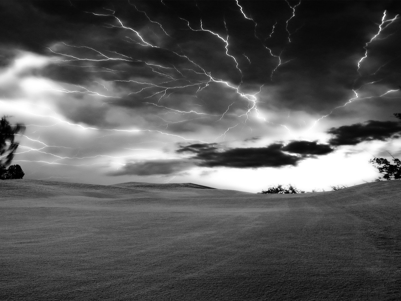 Imagen en blanco y negro de una tormenta en el campoImagen en blanco y negro de una tormenta en el campo