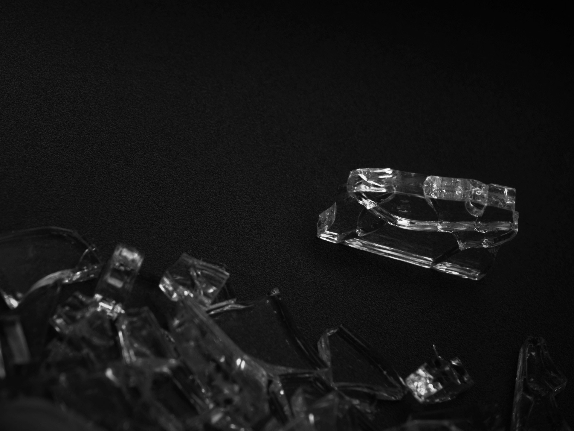Fragmentos de vidrio transparente sobre fondo negroFragmentos de vidrio transparente sobre fondo negro