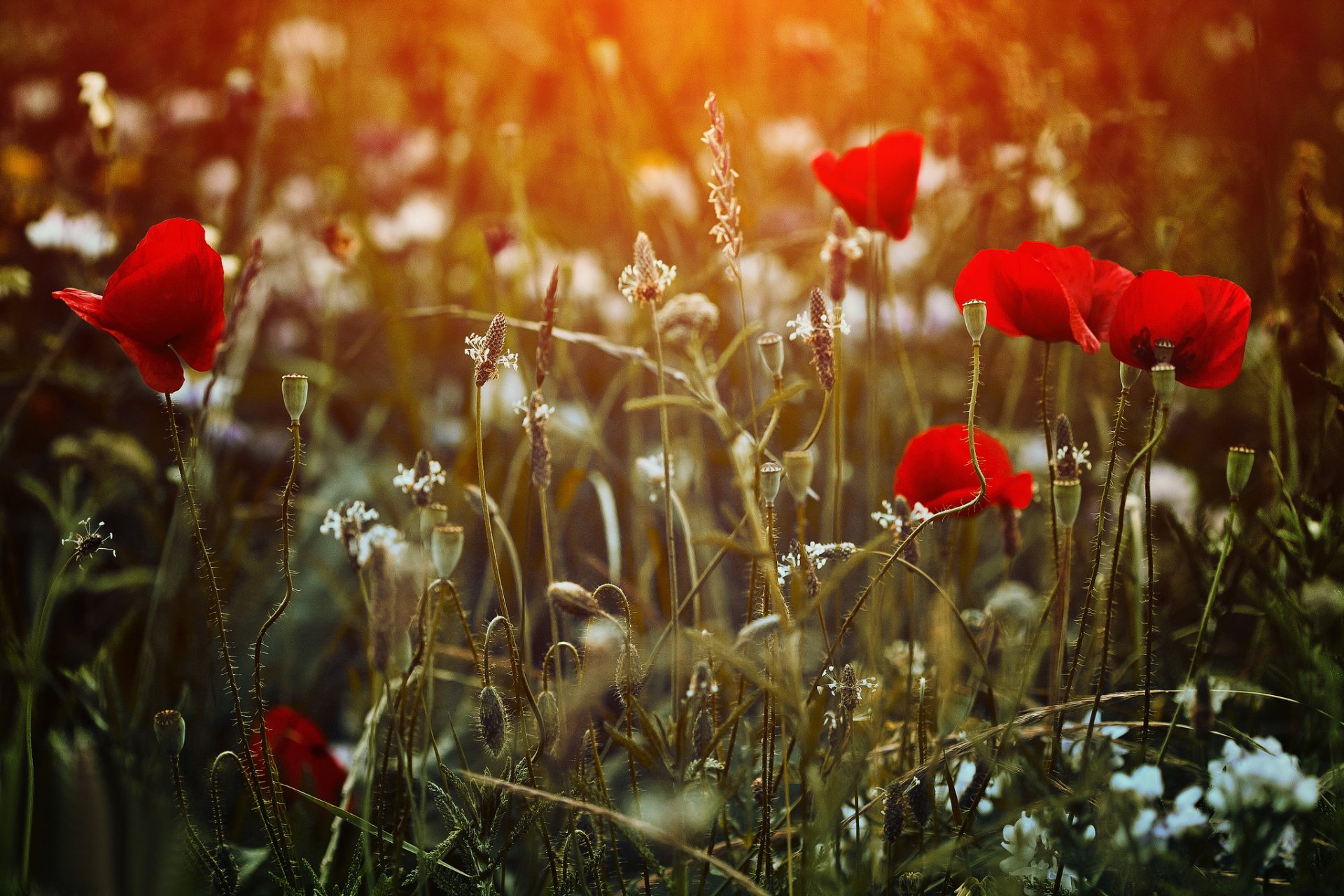 Una niña en un campo con una espiga en sus manos contra el sol que se poneUna niña en un campo con una espiga en sus manos contra el sol que se pone