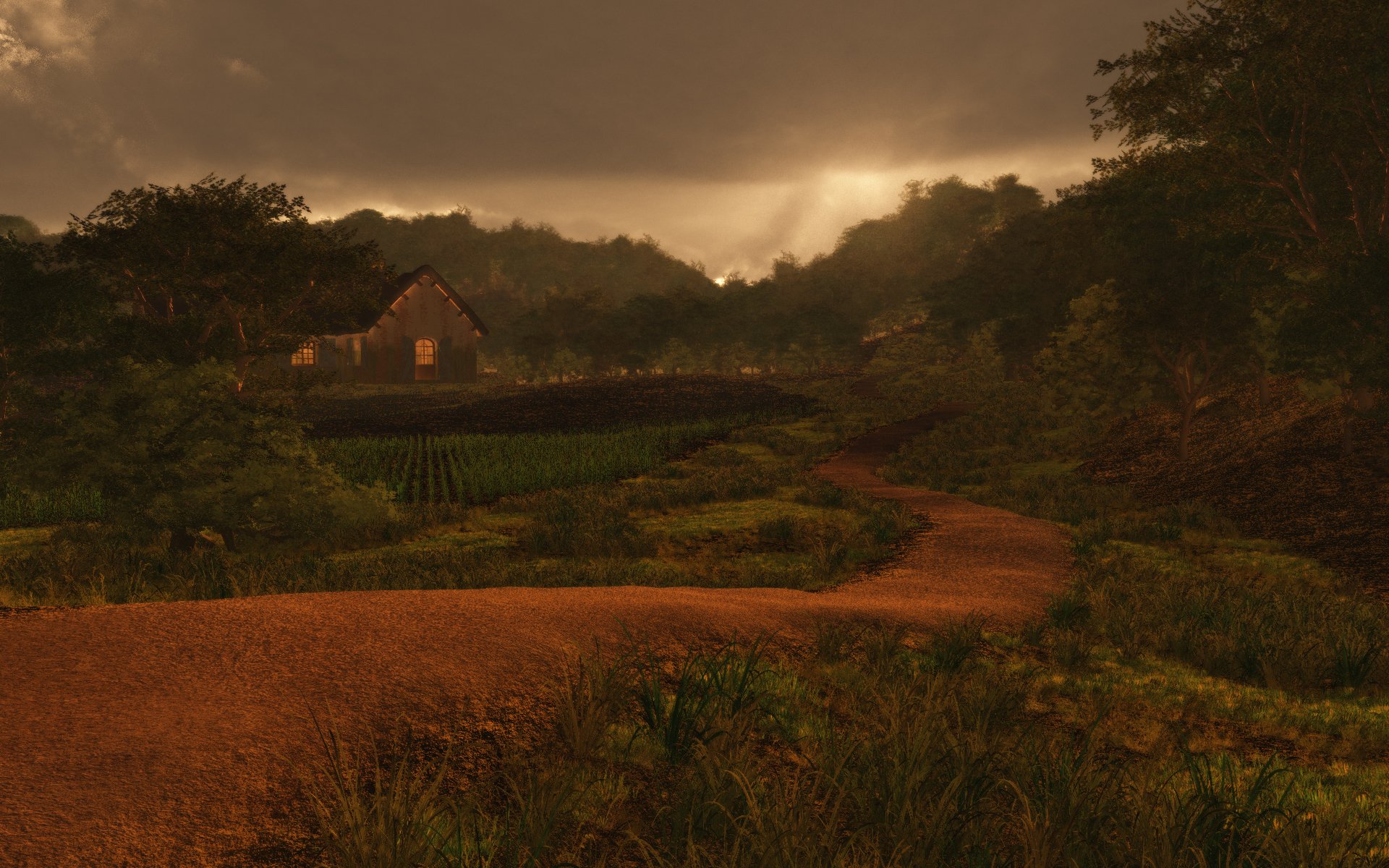 Arte pintado puesta de sol entre la naturaleza y las montañas