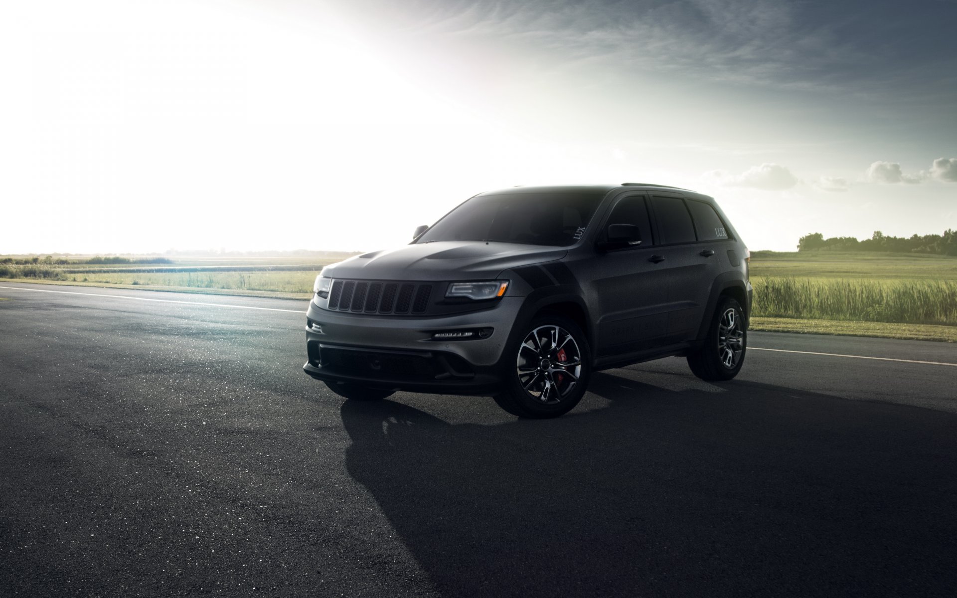 Un jeep rojo se encuentra en el fondo de la ciudad al atardecerUn Jeep rojo se encuentra en el fondo de la ciudad al atardecer