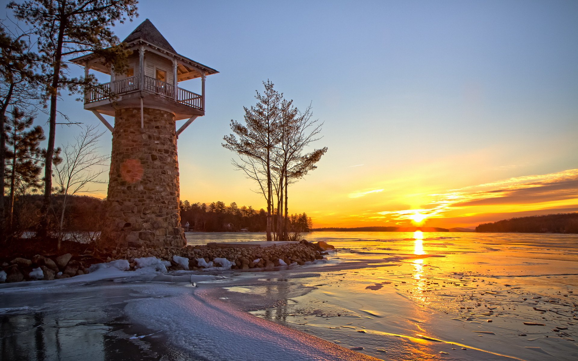 Brillante puesta de sol de fuego en la costa rocosa junto al océanoBrillante puesta de sol de fuego en la costa rocosa junto al océano