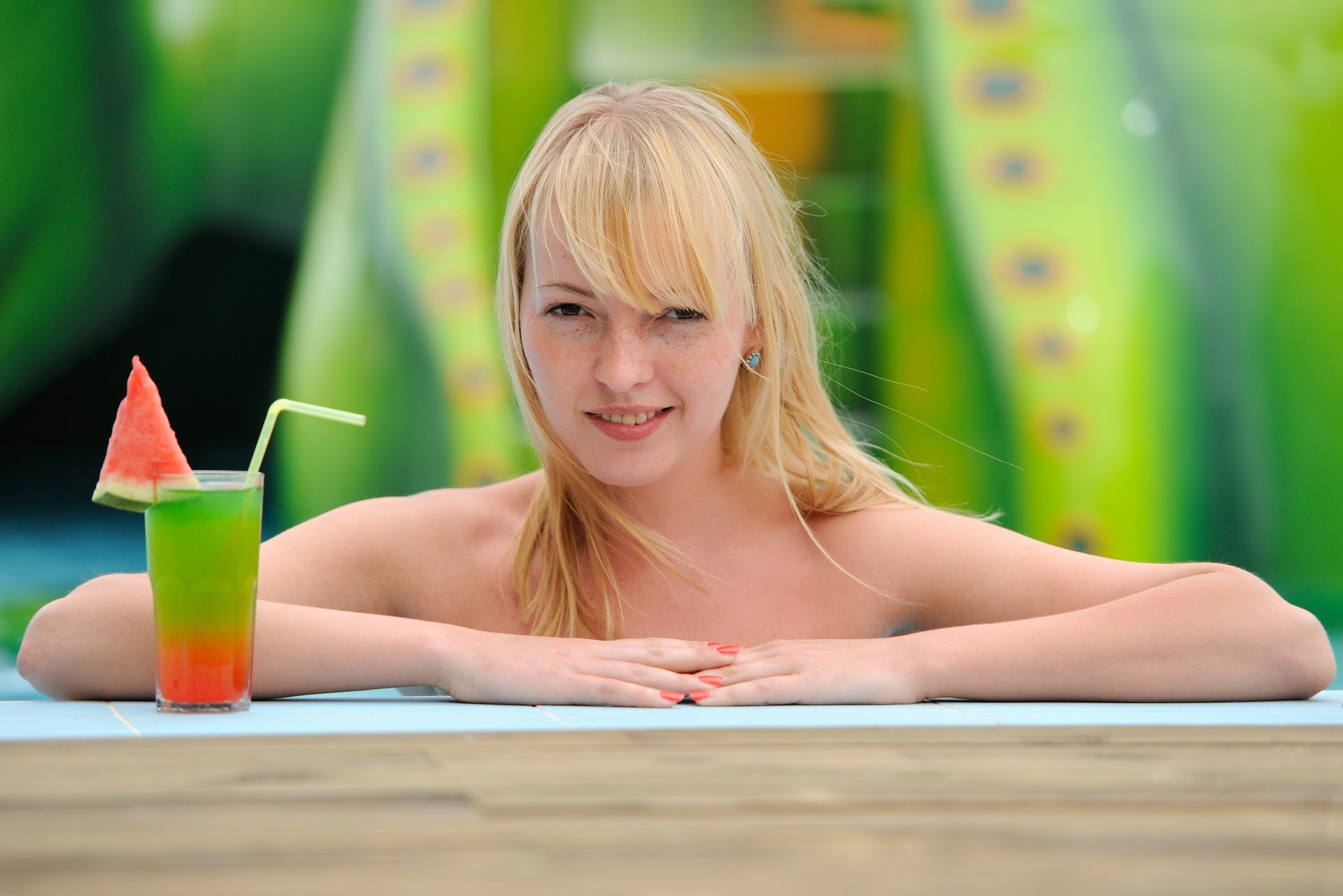 Chica rubia en pantalones cortos posando en la mesa de Billar