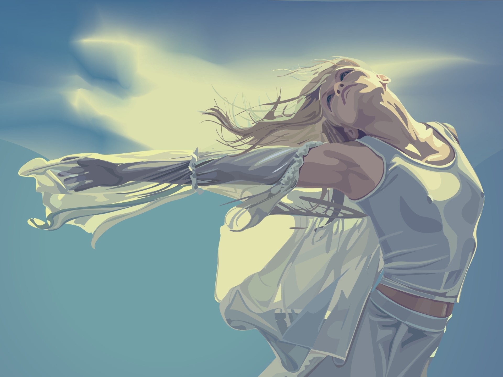 Imagen de una chica bailando contra el cielo