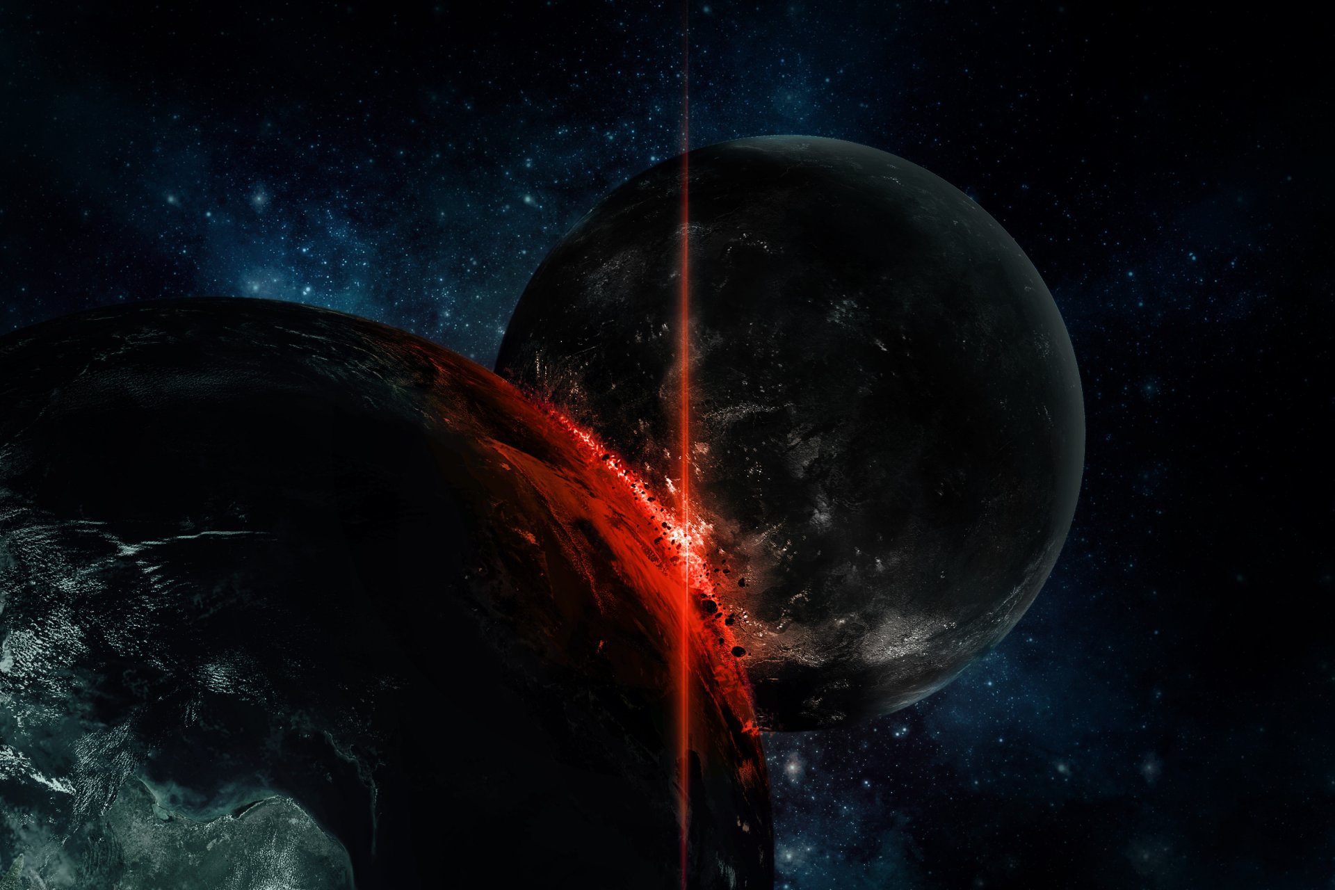 Ciencia ficción choque de planetas en colores