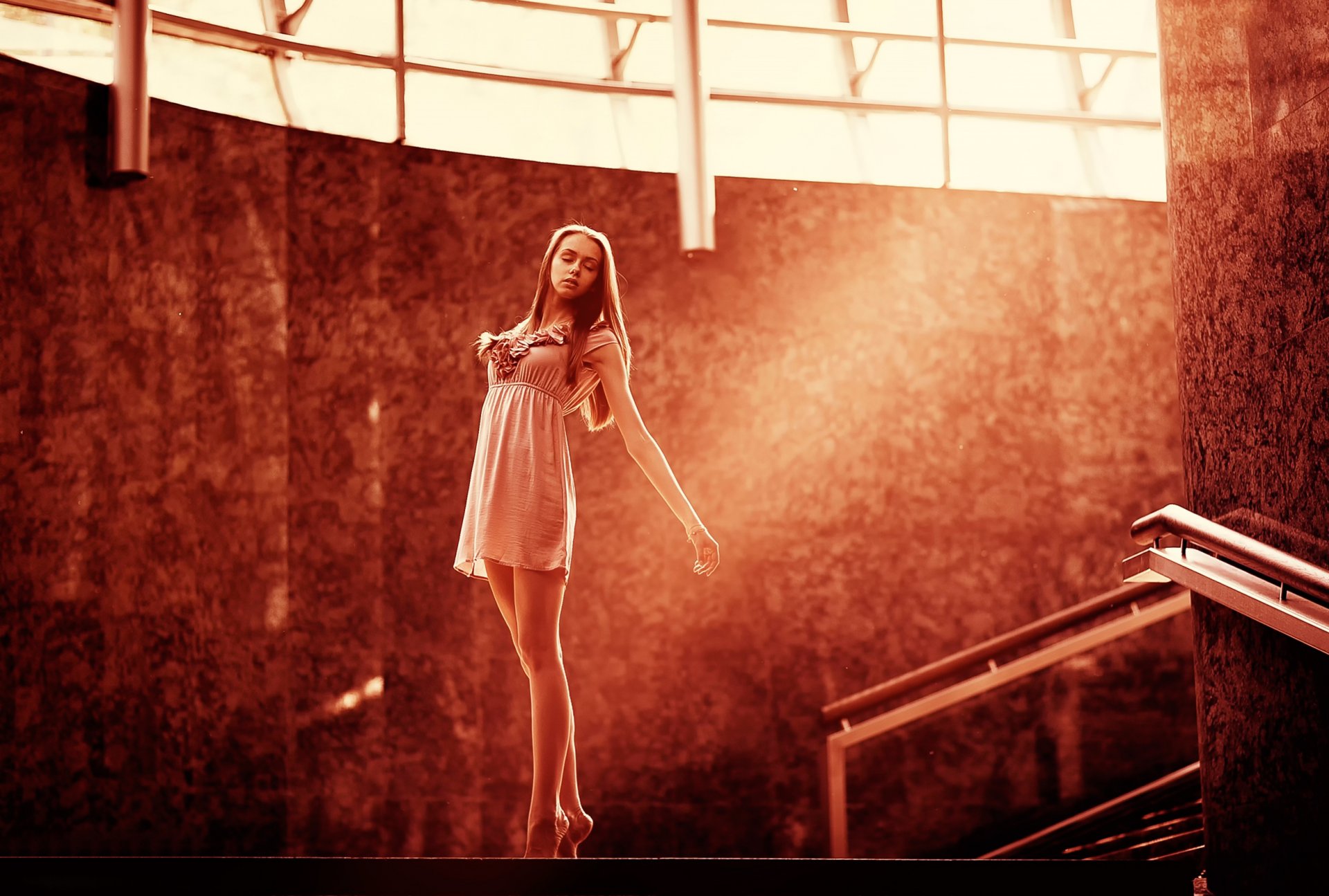 Bailarina bailando en el fondo de una casa de maderaBailarina bailando en el fondo de una casa de madera