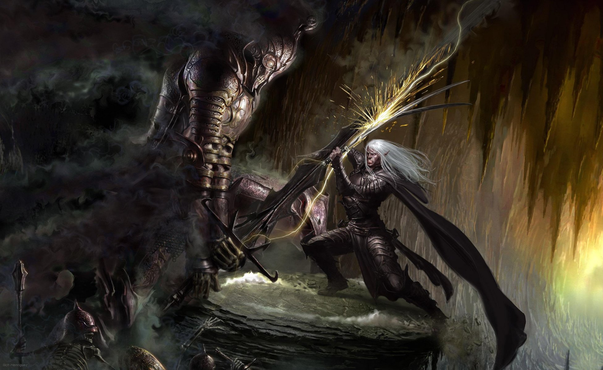 El elfo oscuro de robert salvatore. ilustración de arte para el libro. un gato depredador en una cueva expone sus colmillos en un recipiente mágicoEl elfo oscuro de Robert Salvatore. Ilustración de arte para el libro. Un gato depredador en una cueva expone sus colmillos en un recipiente mágico