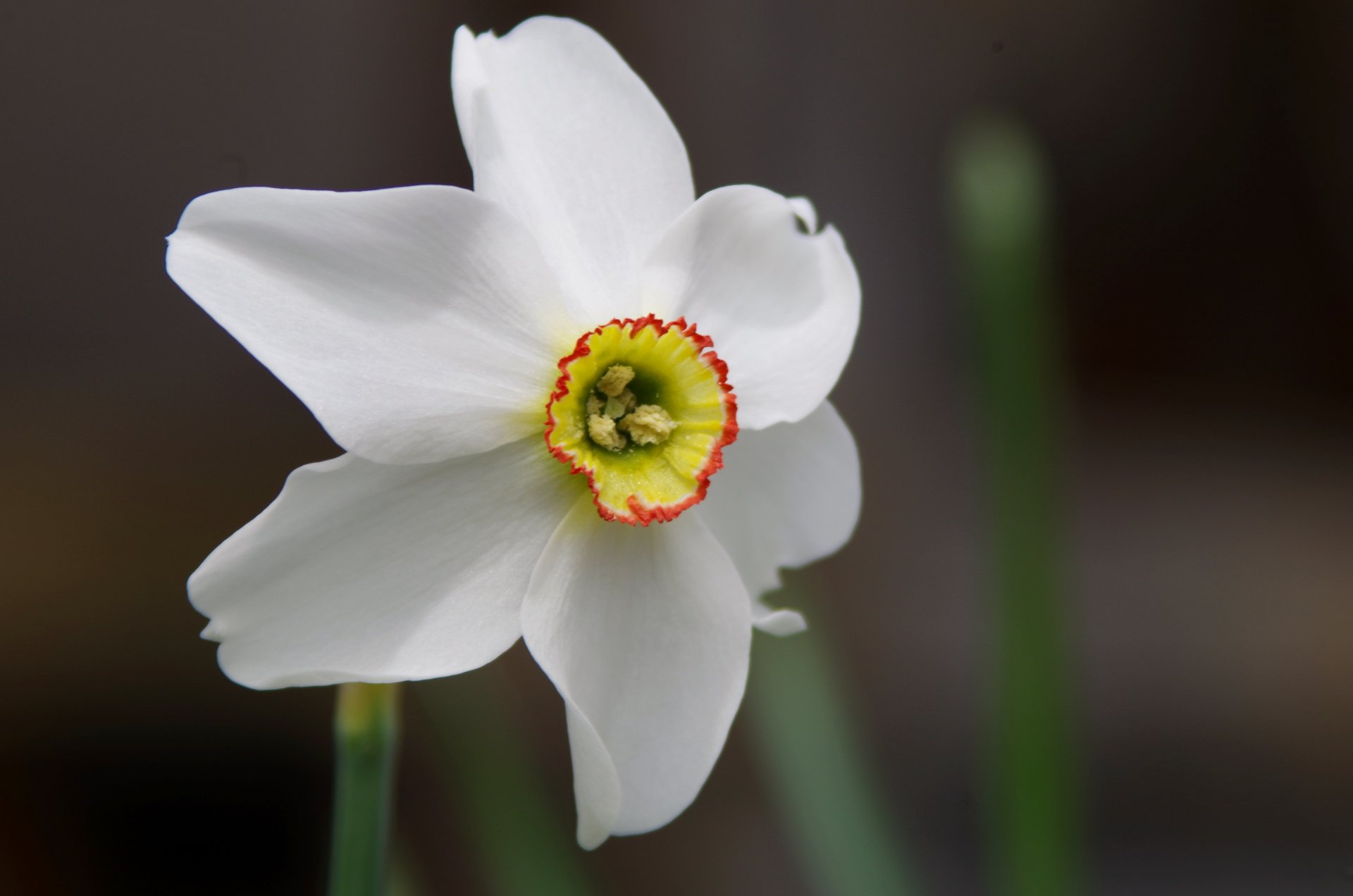 Fotografía macro de narciso blanco con borde brillanteFotografía macro de narciso blanco con borde brillante
