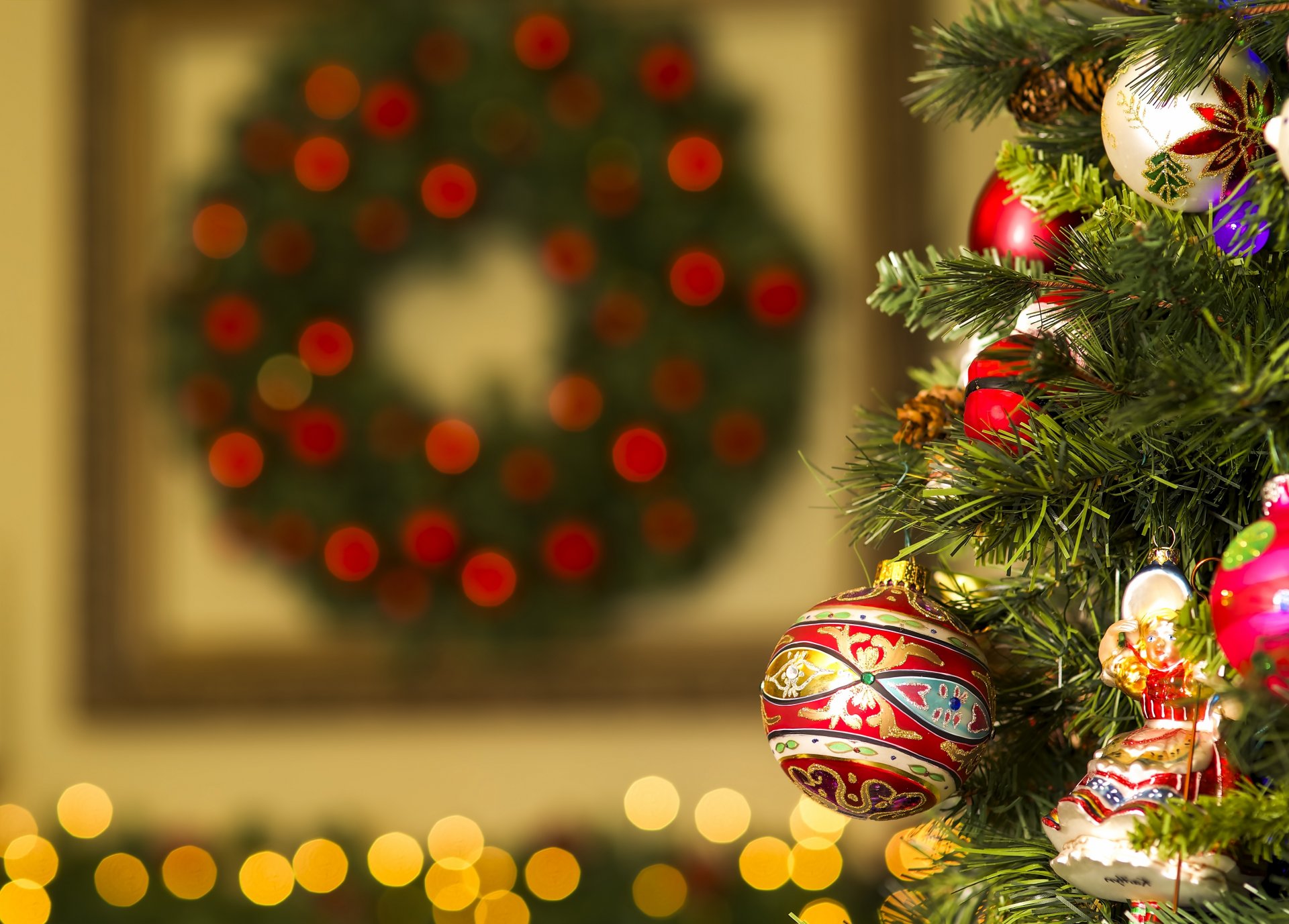 Juguetes de navidad prpzdnichnye en la rama de árbol de navidadJuguetes de Navidad prpzdnichnye en la rama de árbol de Navidad