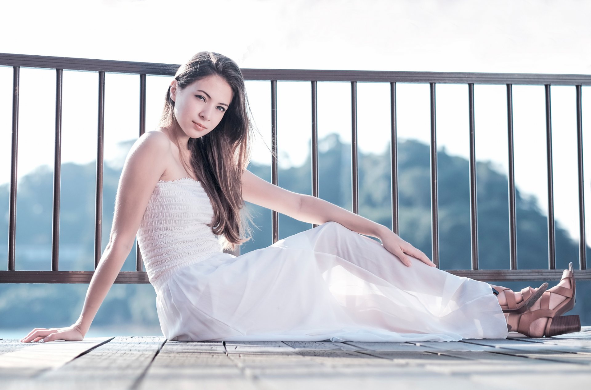 Catalina de la asunción. la chica del vestido negro en el puente del agua junto al río