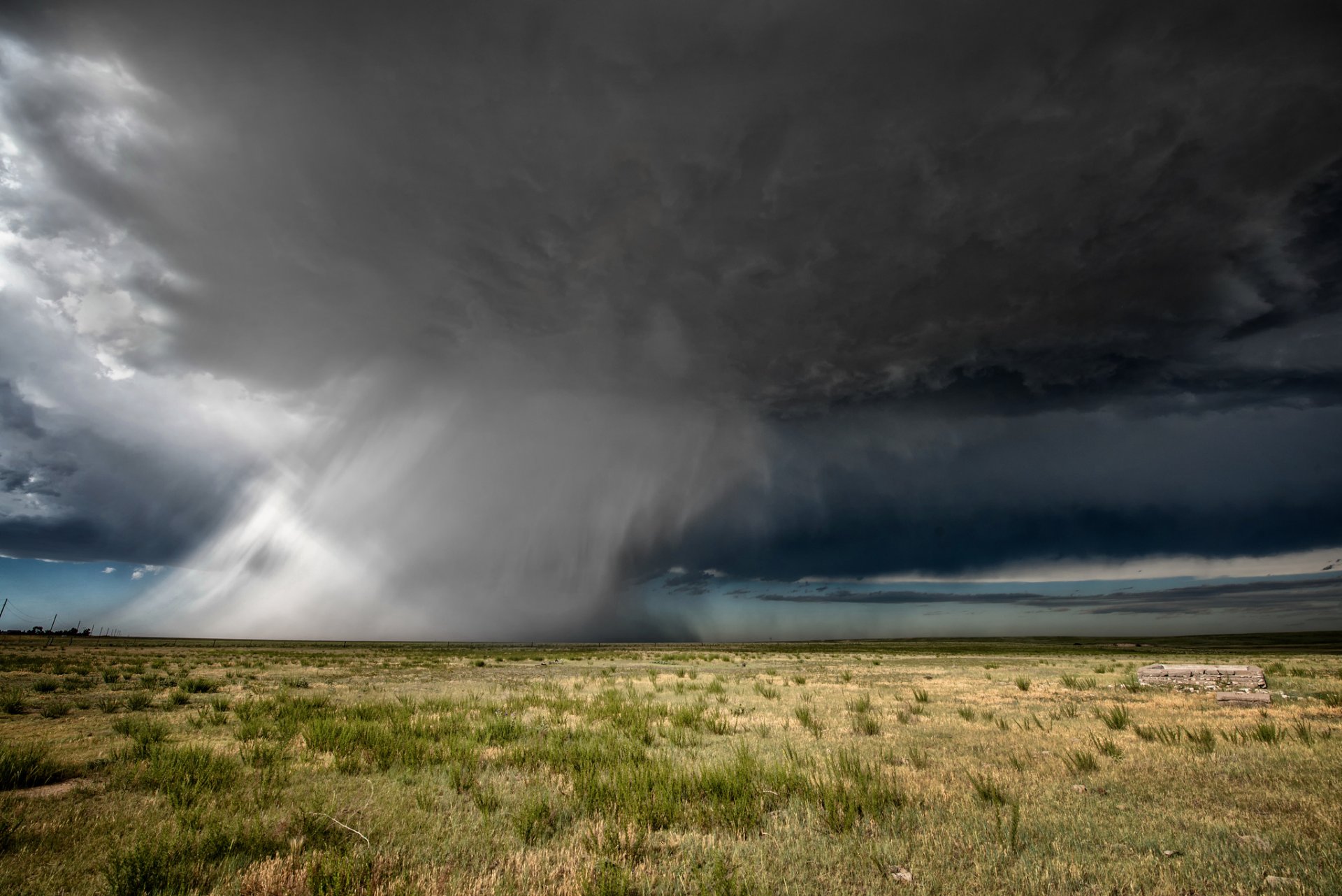 Lluvia en la estepa bajo el cielo oscuro