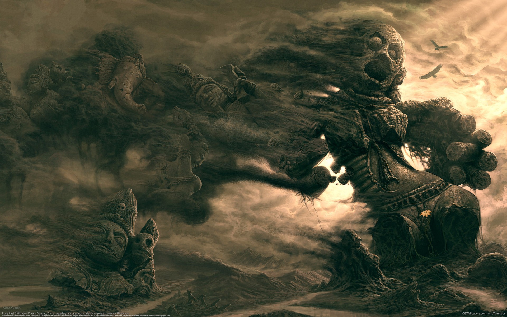 Espeluznantes ídolos de arena iluminados por los rayos del solEspeluznantes ídolos de arena iluminados por los rayos del sol