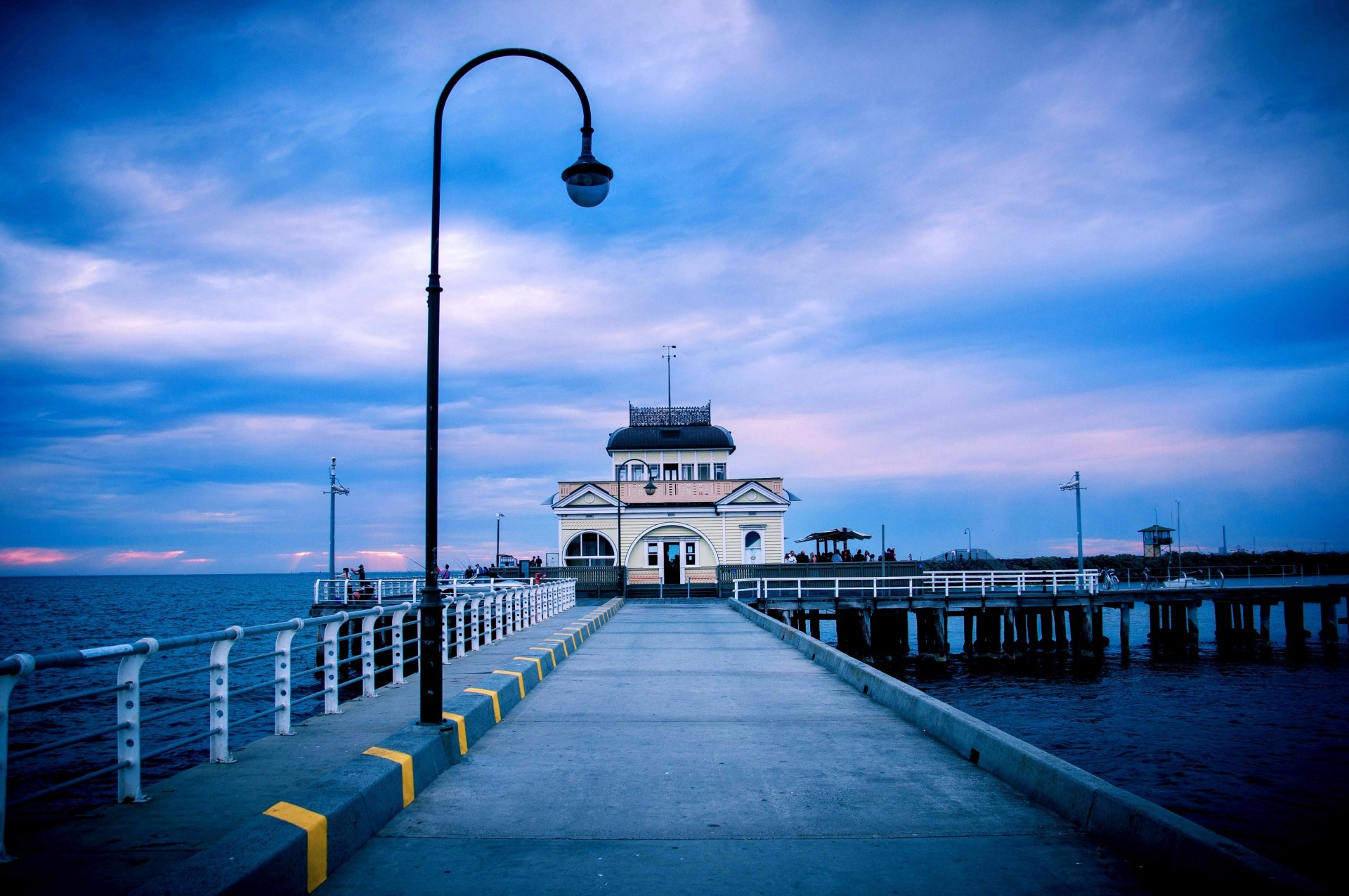 Linterna en el puente de la ciudad australiana de melbourneLinterna en el puente de la ciudad australiana de Melbourne