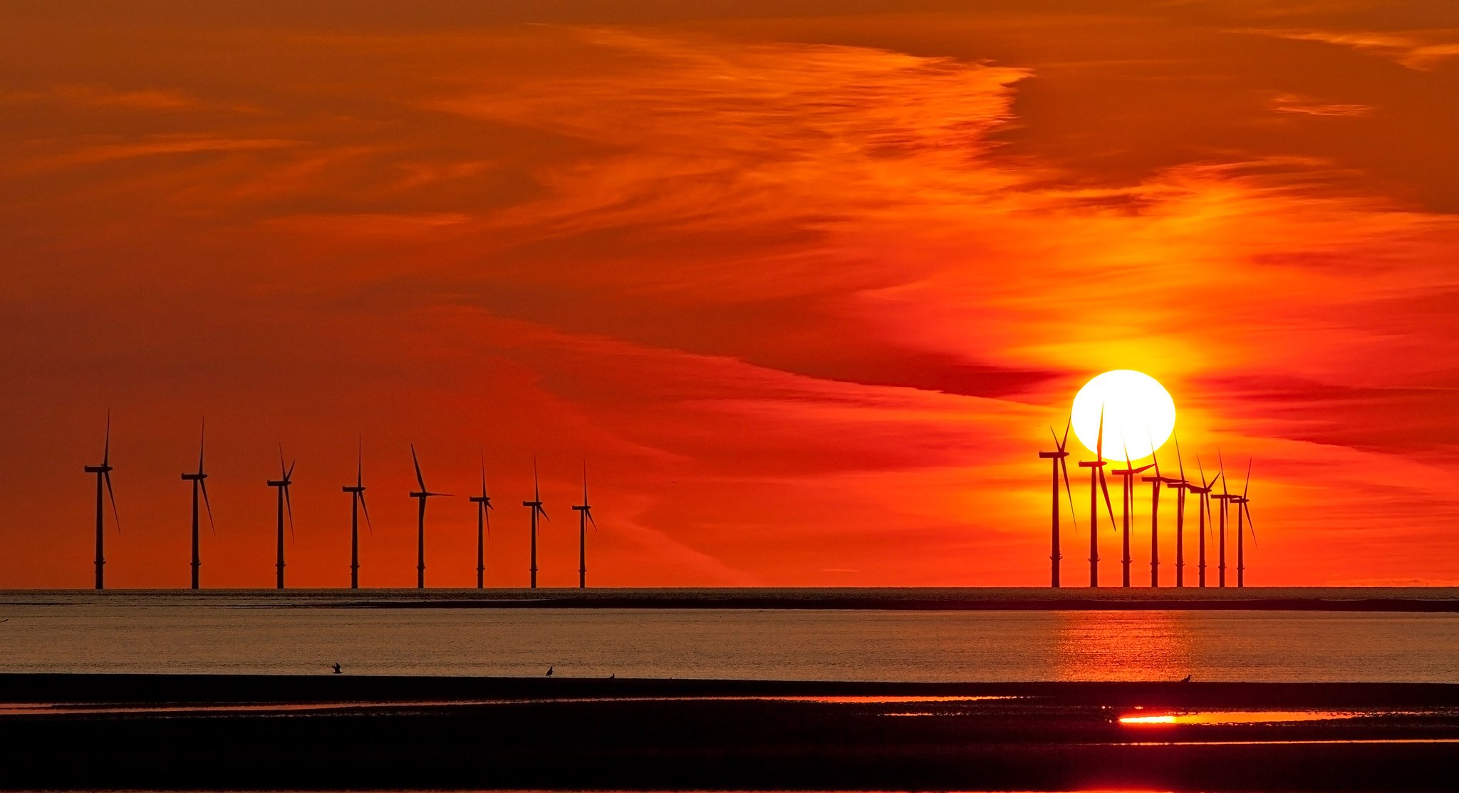 Molinos de viento y el sol que se pone detrás de ellosMolinos de viento y el sol que se pone detrás de ellos