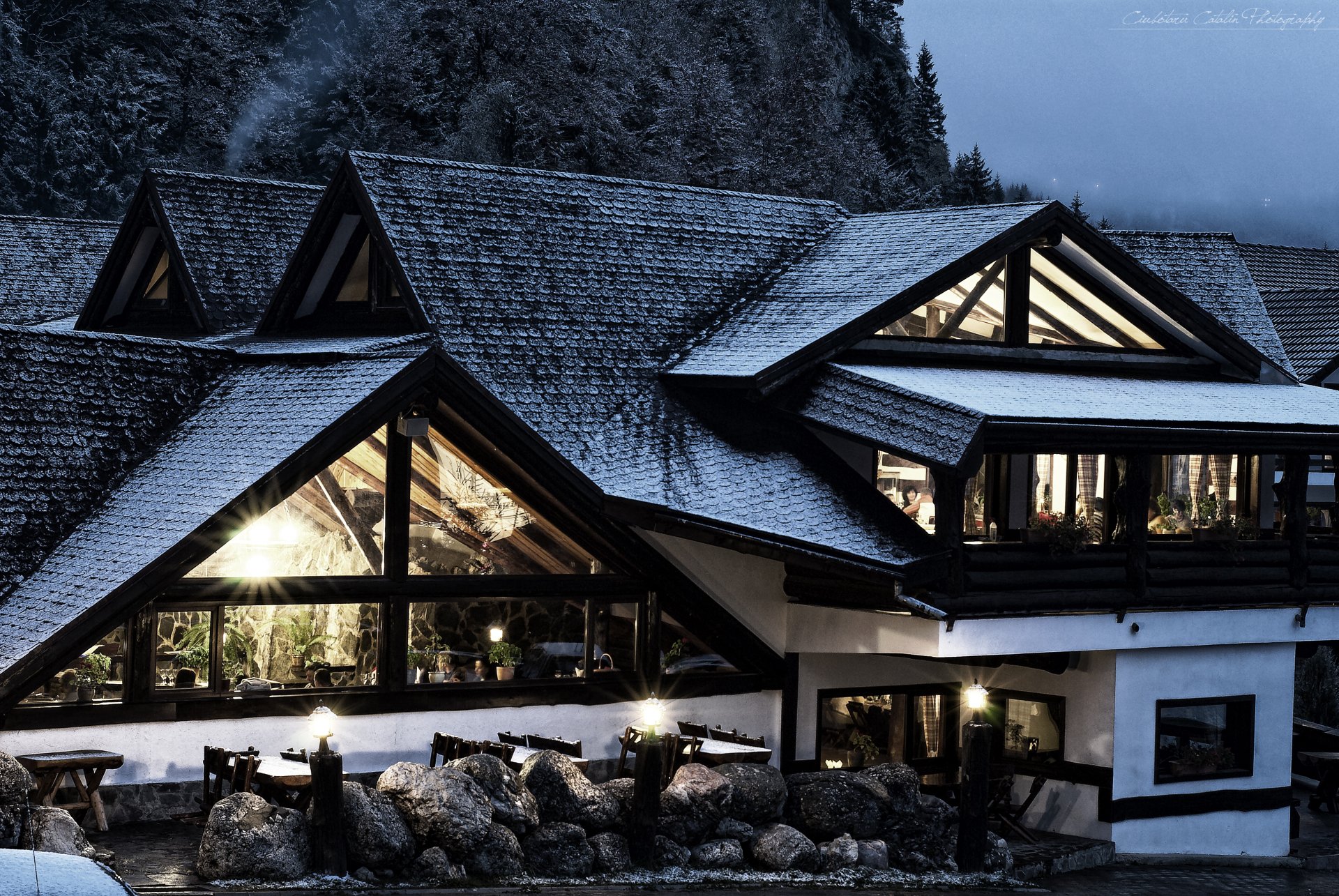 Verde sólido en el fondo de la casa escondida en las montañas y los árbolesVerde sólido en el fondo de la casa escondida en las montañas y los árboles
