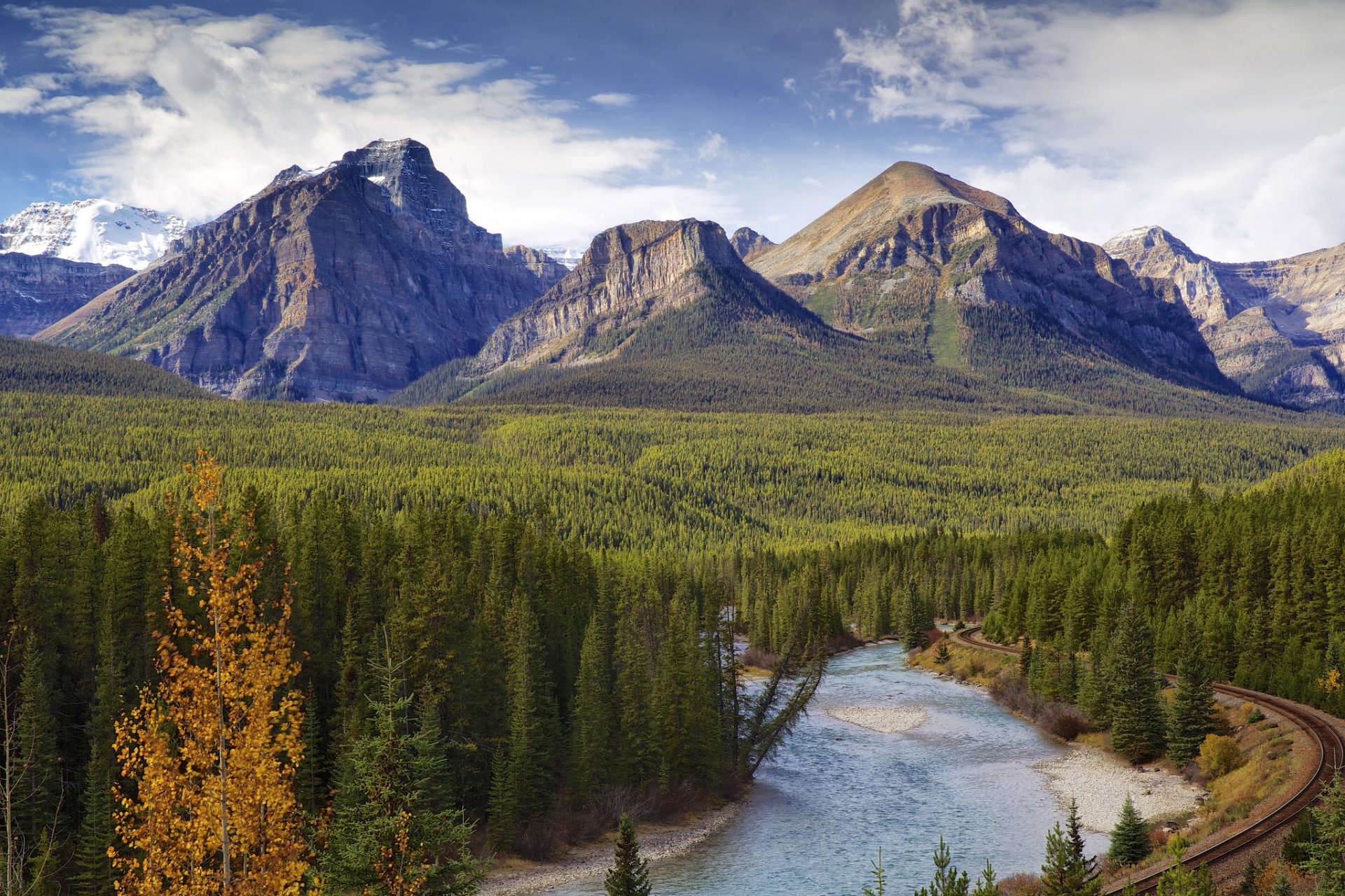 Parque nacional banff en otoño, carretera y bosqueParque nacional Banff en otoño, carretera y bosque