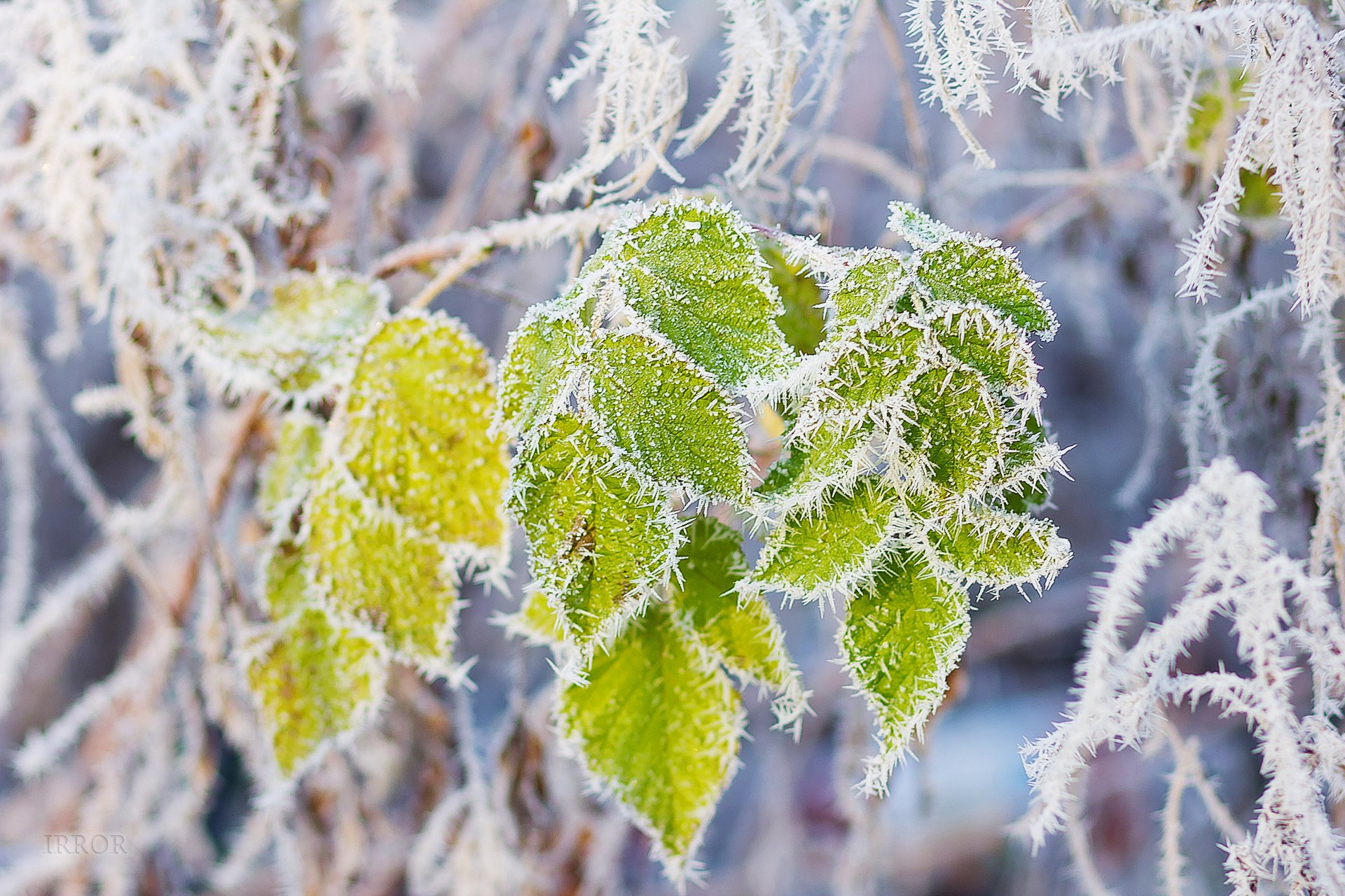 Escarcha en las ramas en el parque por la noche con lucesEscarcha en las ramas en el parque por la noche con luces