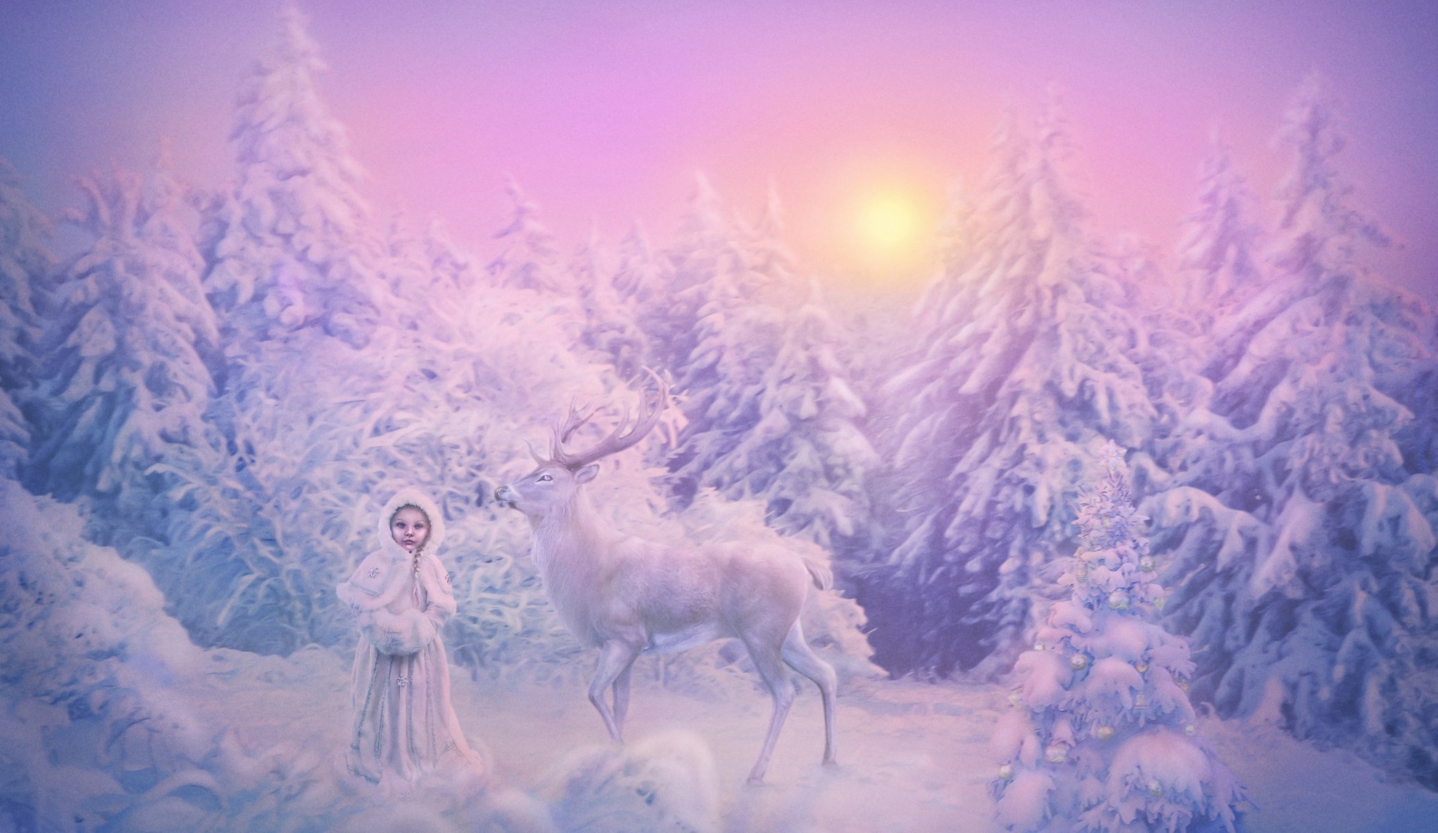 Paisaje de abetos cubiertos de nieve con cielo azulPaisaje de abetos cubiertos de nieve con cielo azul