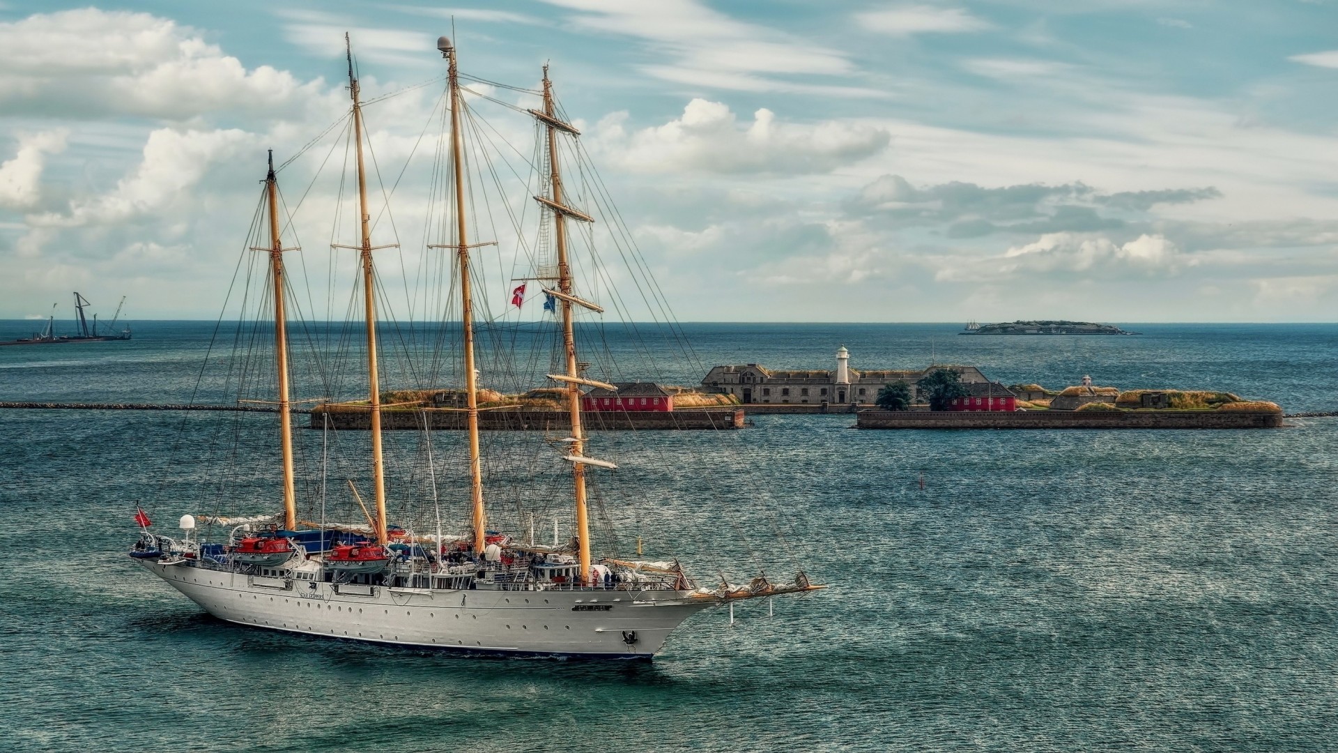 Un enorme portacontenedores navega por el mar azulUn enorme portacontenedores navega por el mar azul