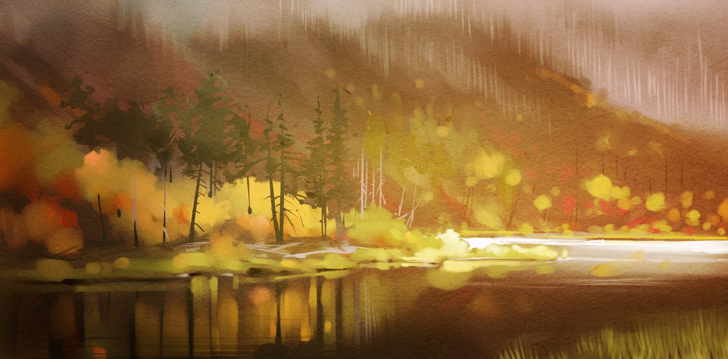 Reflejo en el río de los colores brillantes del bosque de otoñoReflejo en el río de los colores brillantes del bosque de otoño
