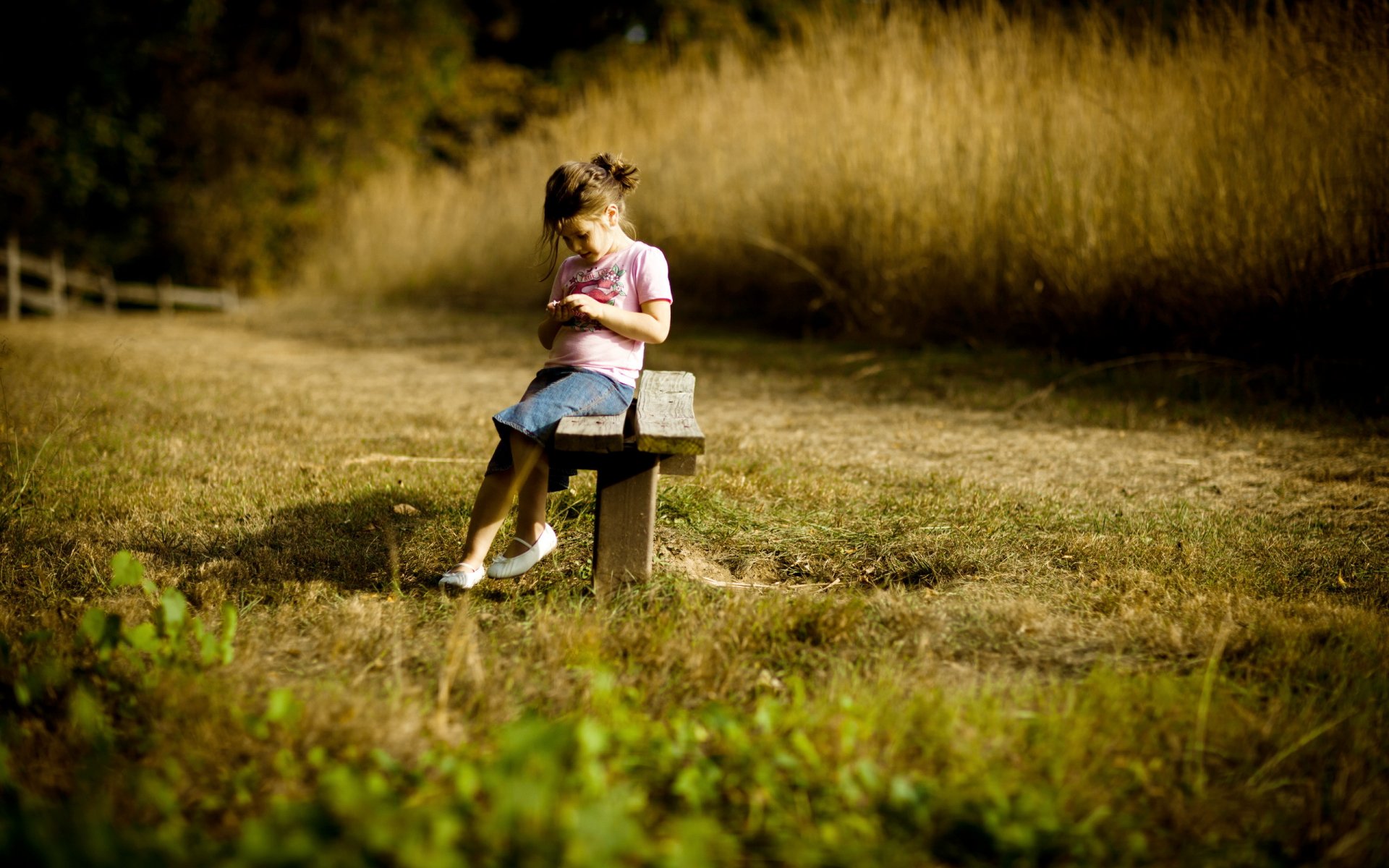 Chica con camisa a cuadros en los árboles, desenfoqueChica con camisa a cuadros en los árboles, desenfoque