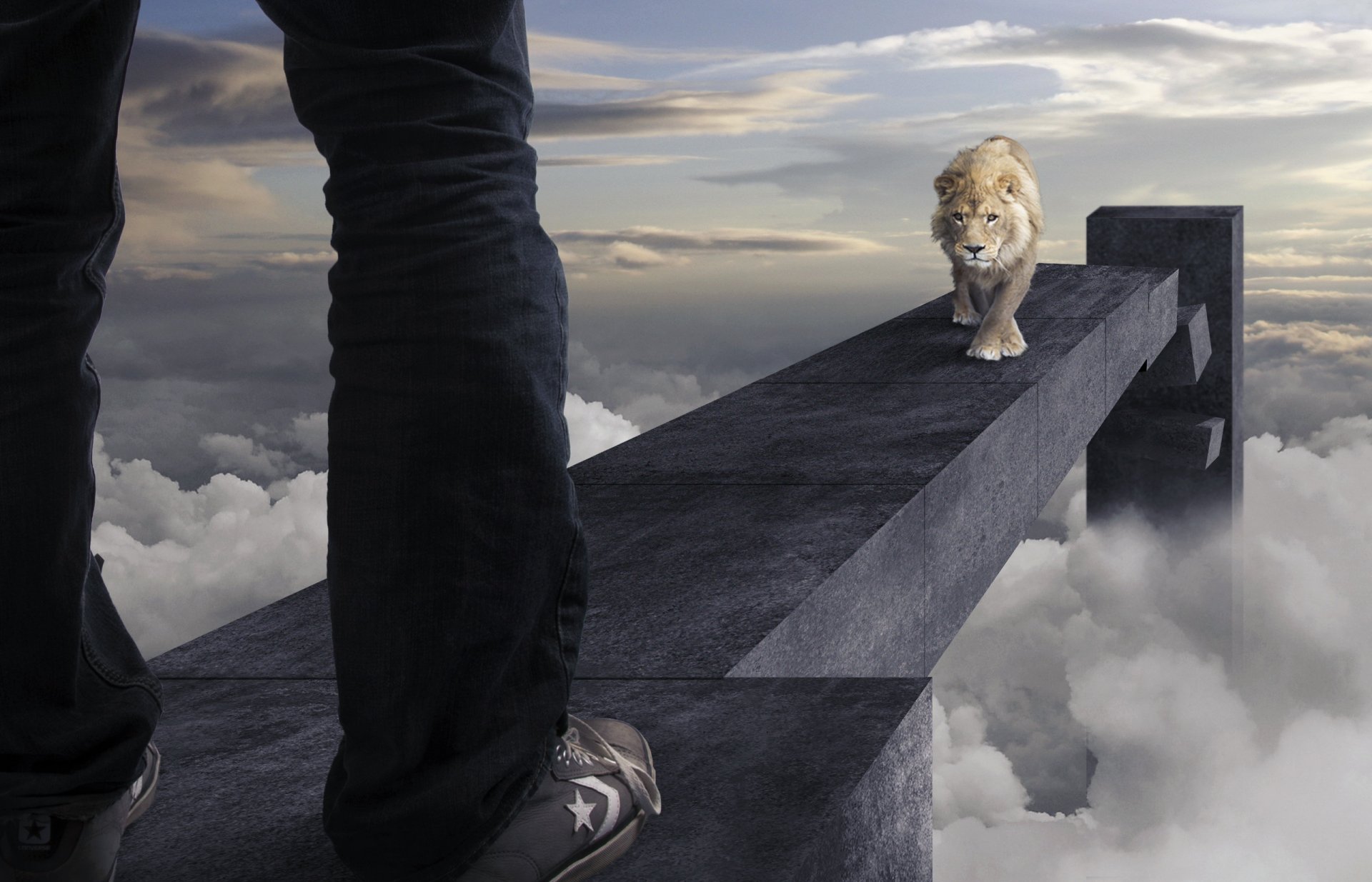 Hermosa imagen emocionante de un chico con un leónHermosa imagen emocionante de un chico con un León
