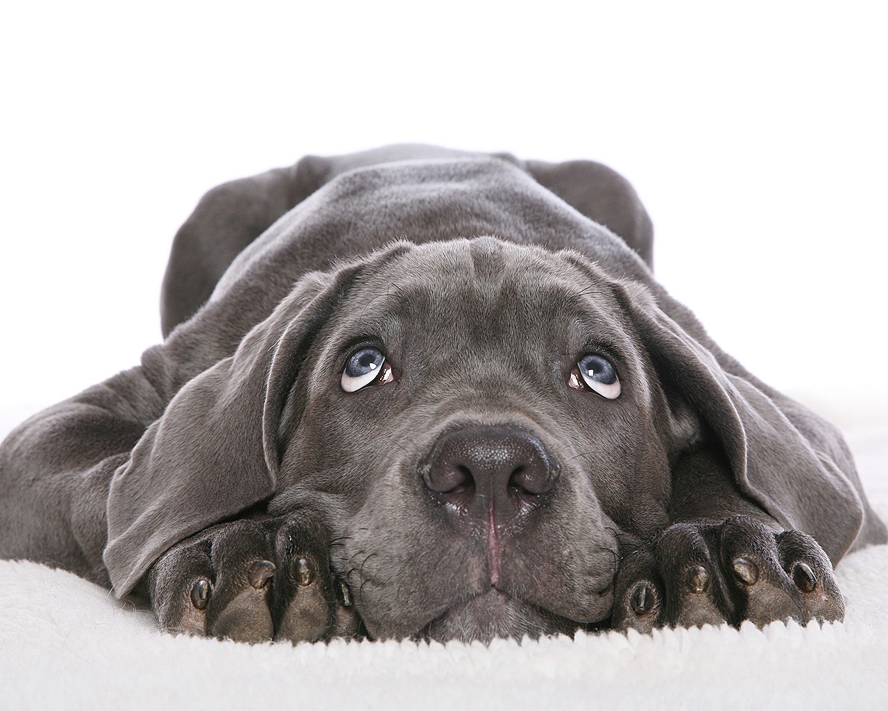Perro triste sobre fondo blanco