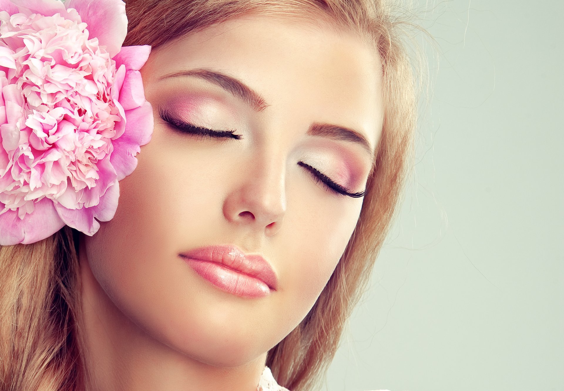 Hermosa chica con una flor rosa
