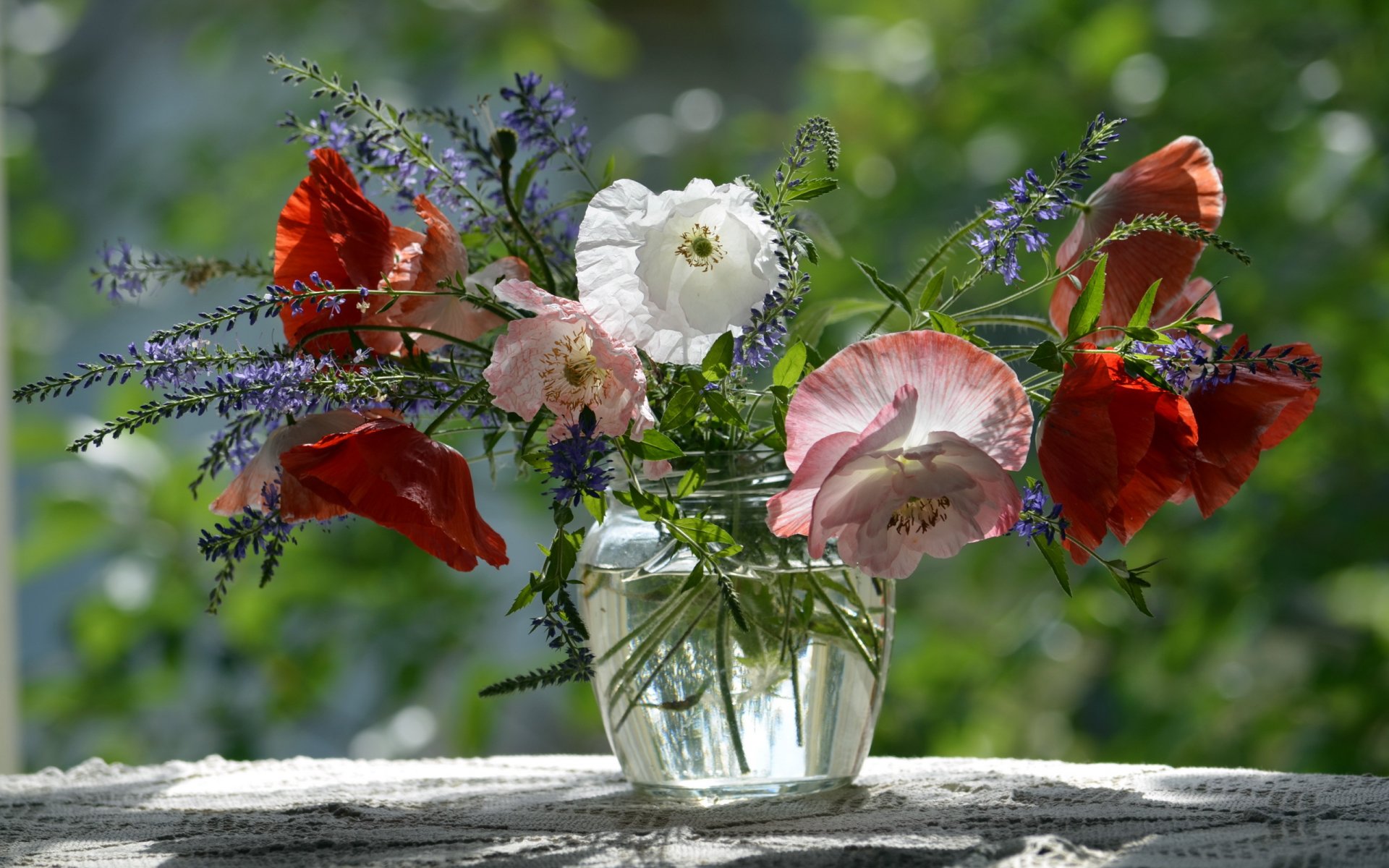 Inflorescencia de amapola sobre fondo de flores
