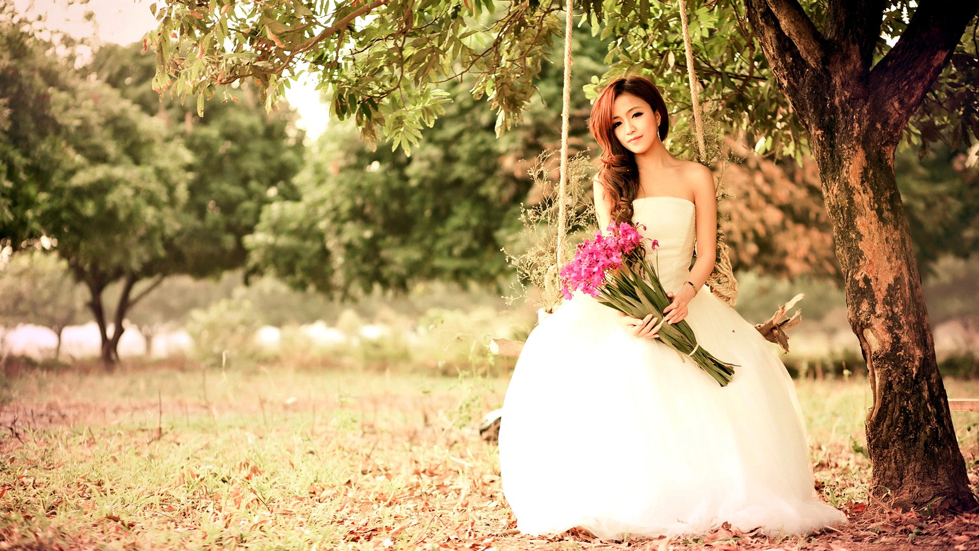 Chica en vestido de novia con flores