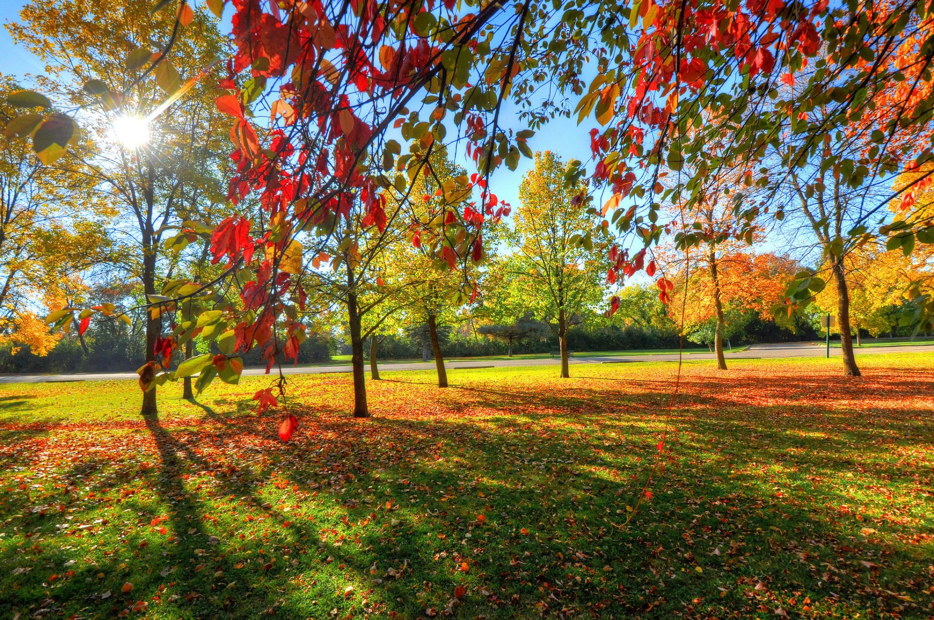 Follaje amarillo a lo largo de la carretera