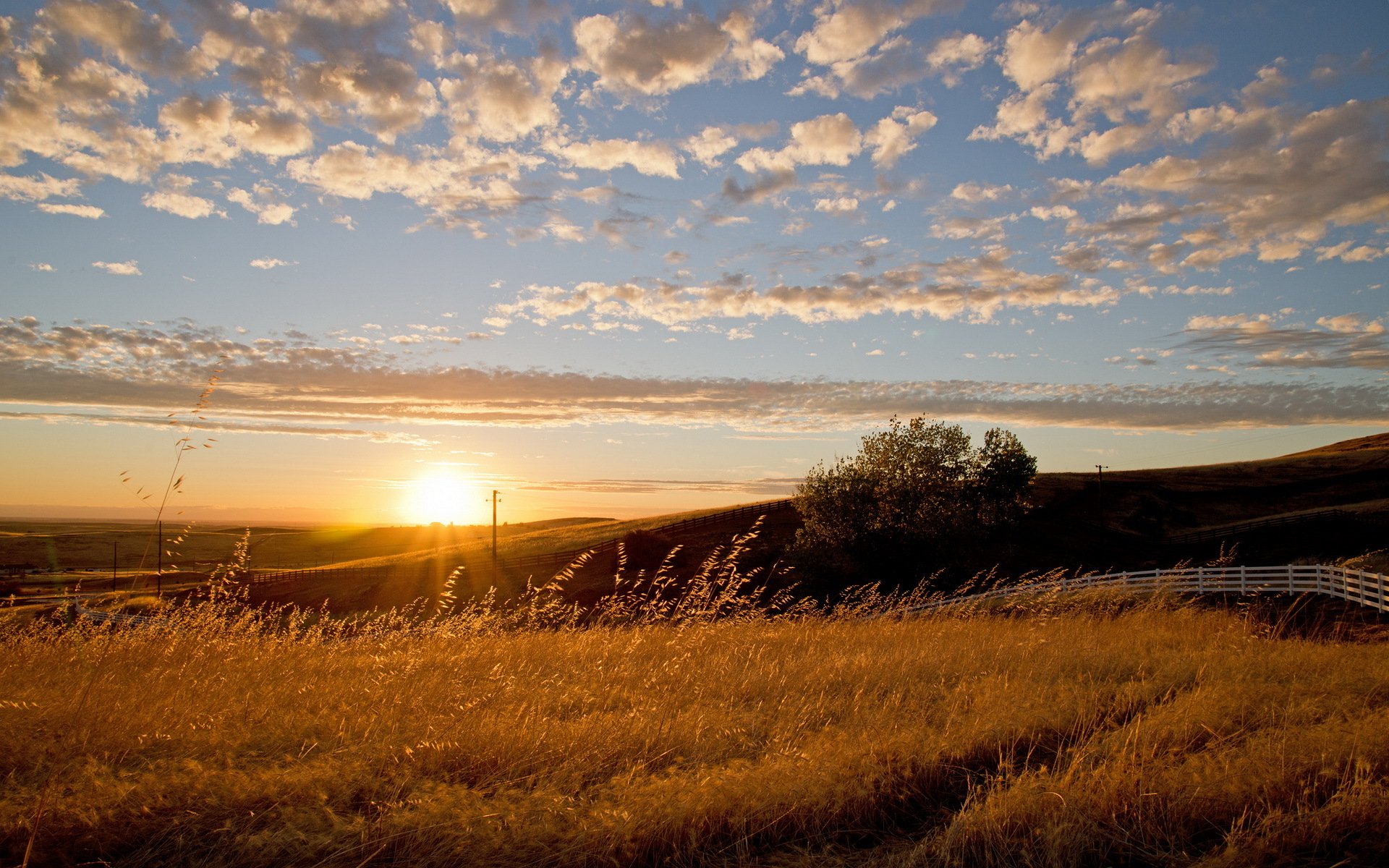 Los rayos del sol a través de los árboles iluminan la cercaLos rayos del sol a través de los árboles iluminan la cerca