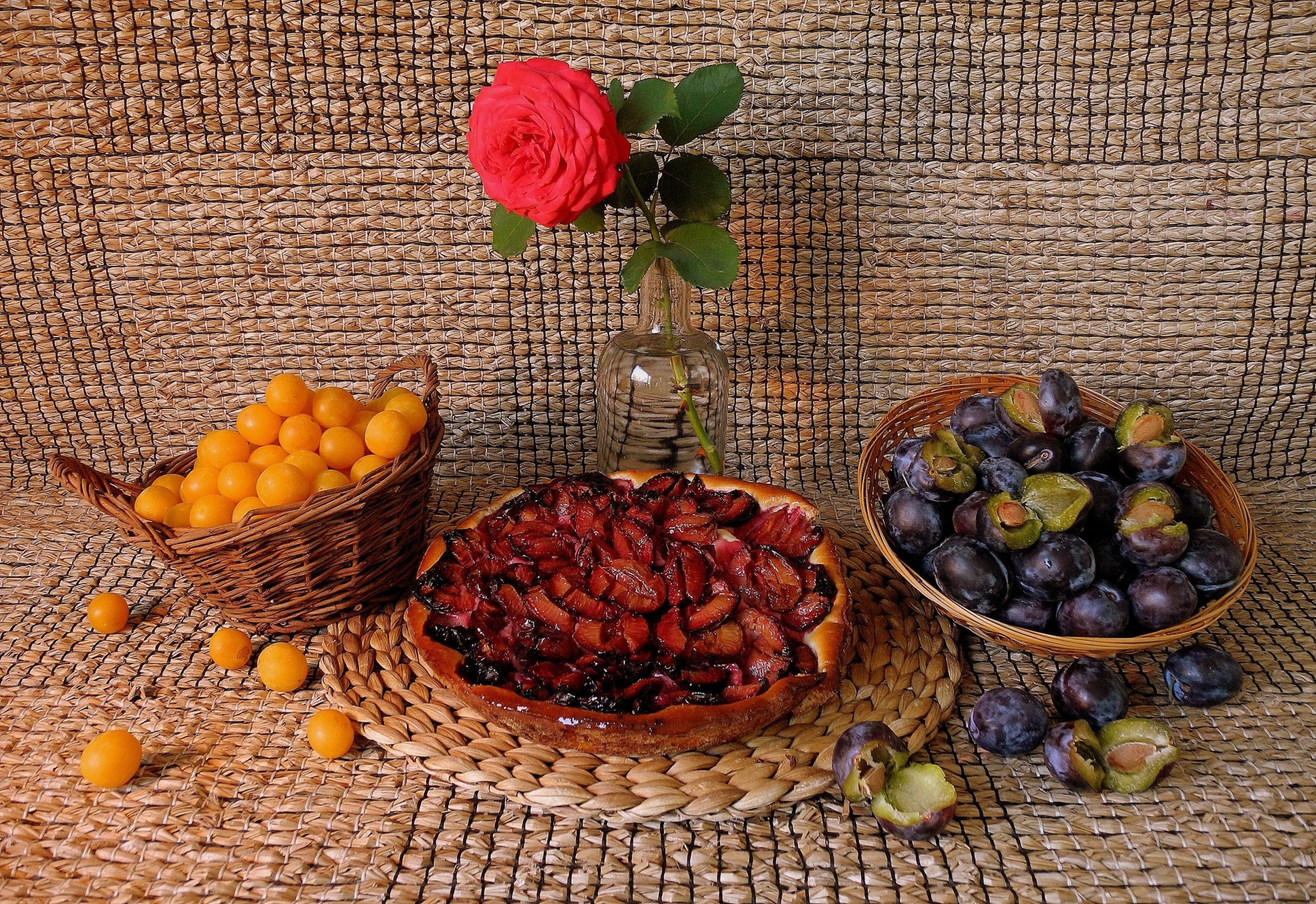 Paisaje afrutado con rosa roja para Bodegón