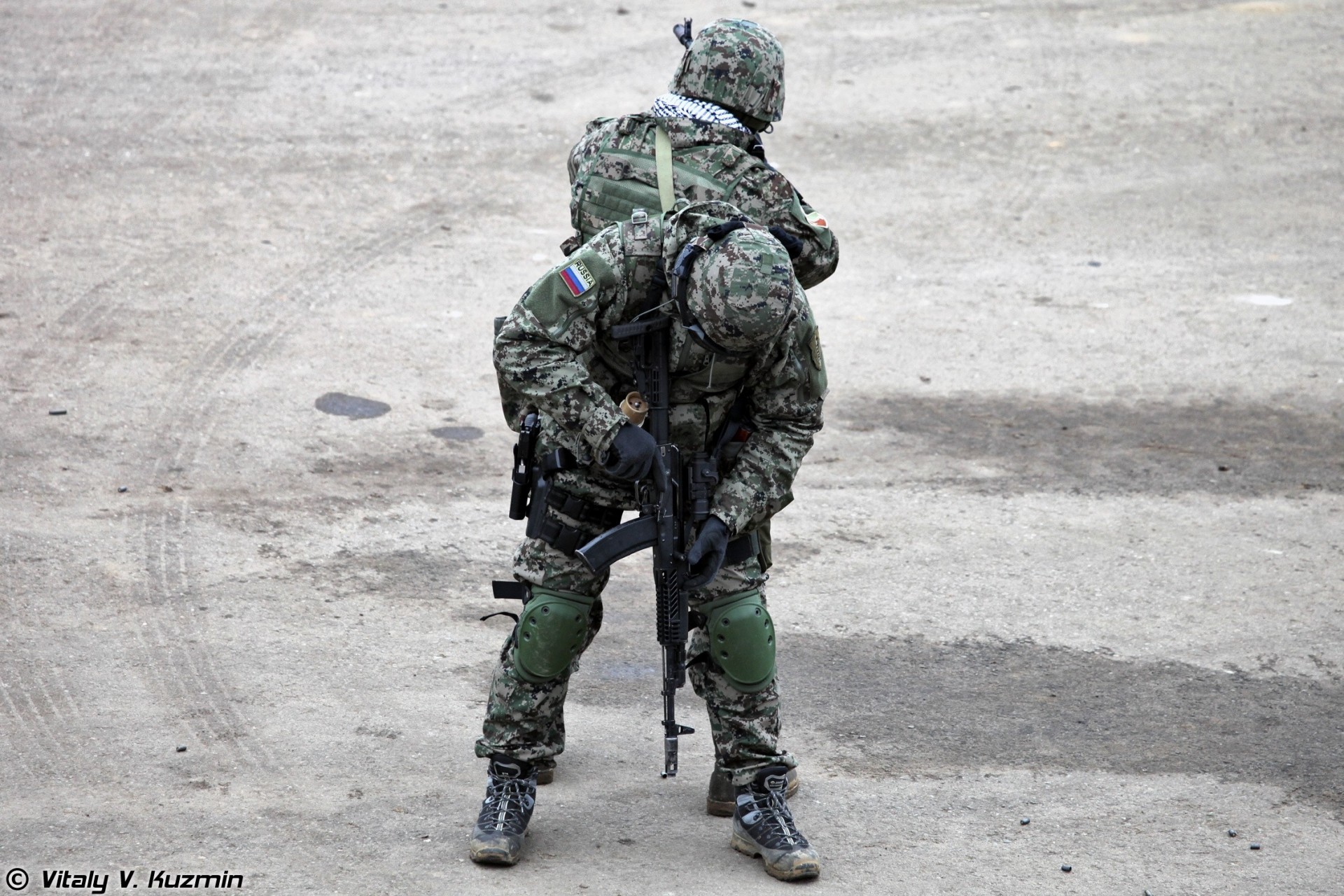 Fuerzas especiales letonas con armas en el desierto
